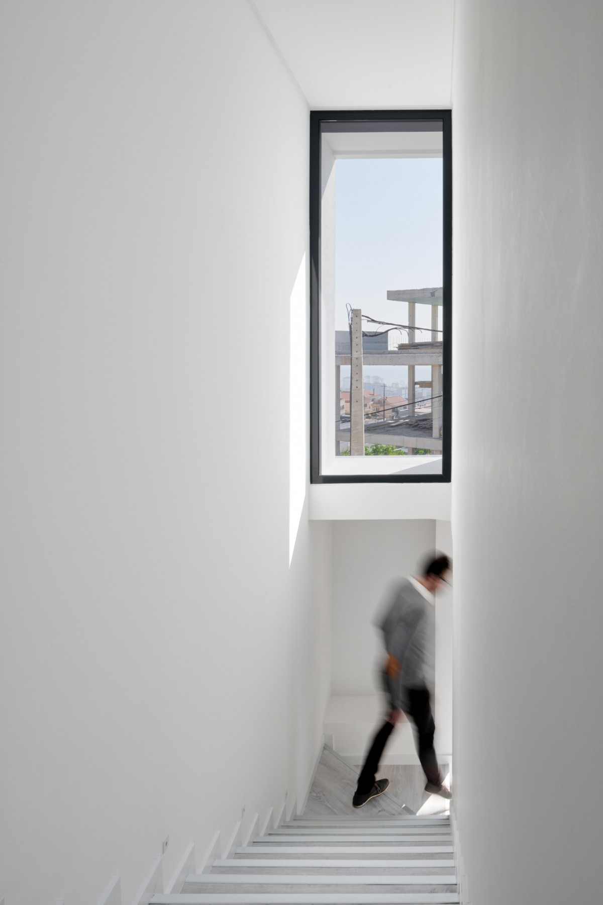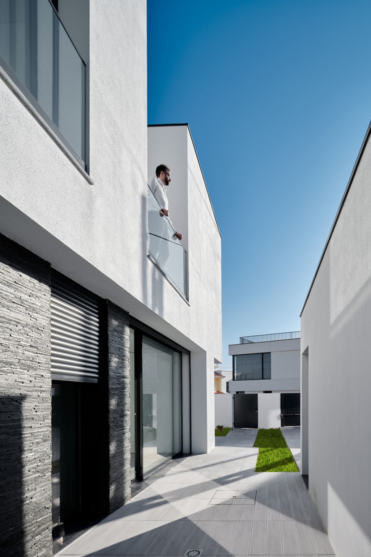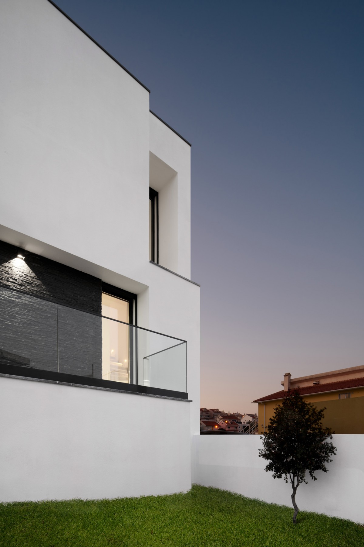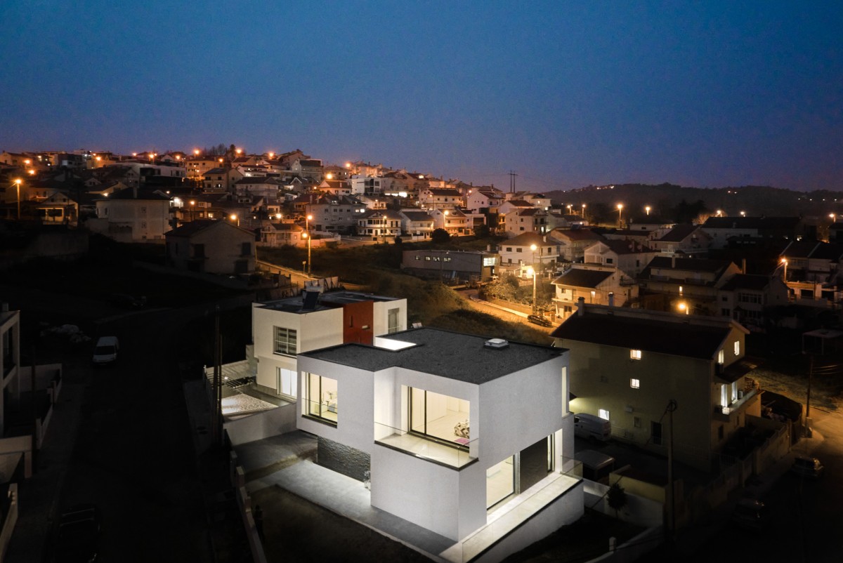 The massing designed in this manner creates a prominent volume in relation to the south street, thus guaranteeing greater privacy compared to the glazed area of the dwelling.