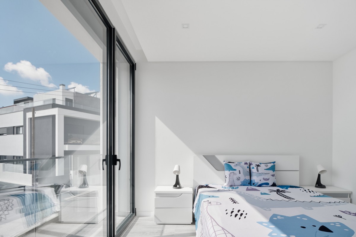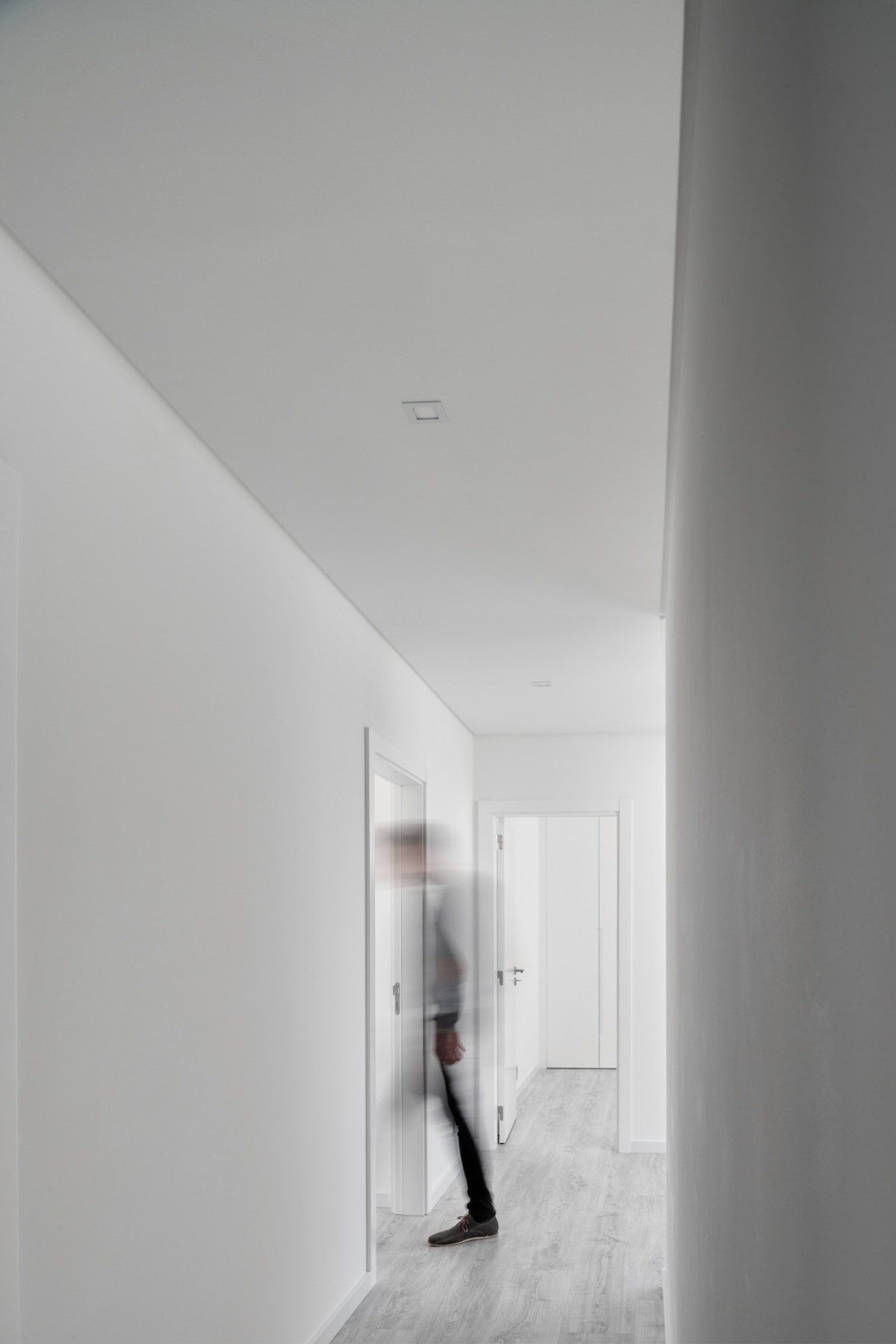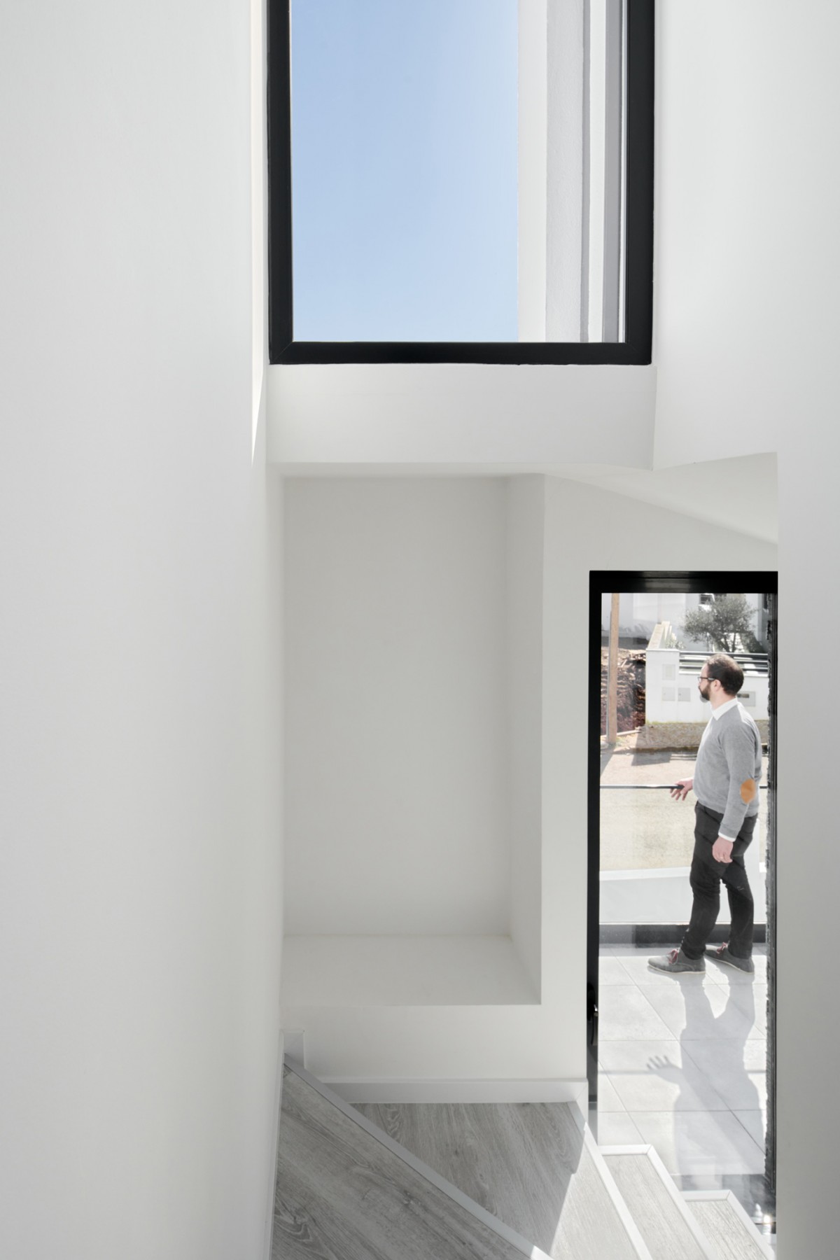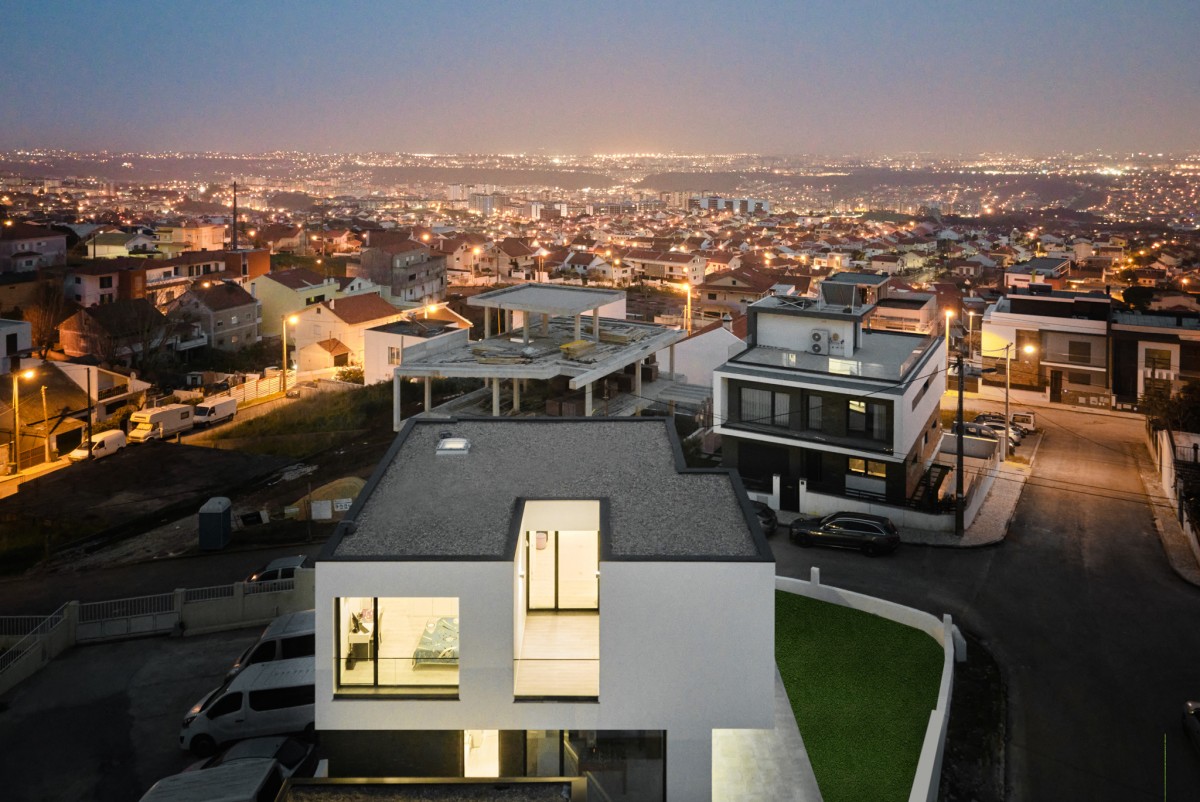 The massing designed in this manner creates a prominent volume in relation to the south street, thus guaranteeing greater privacy compared to the glazed area of the dwelling.