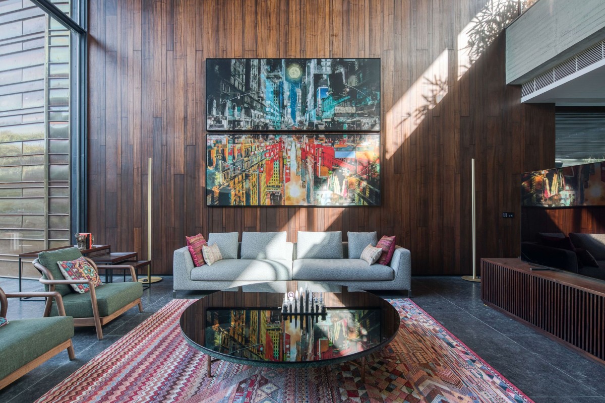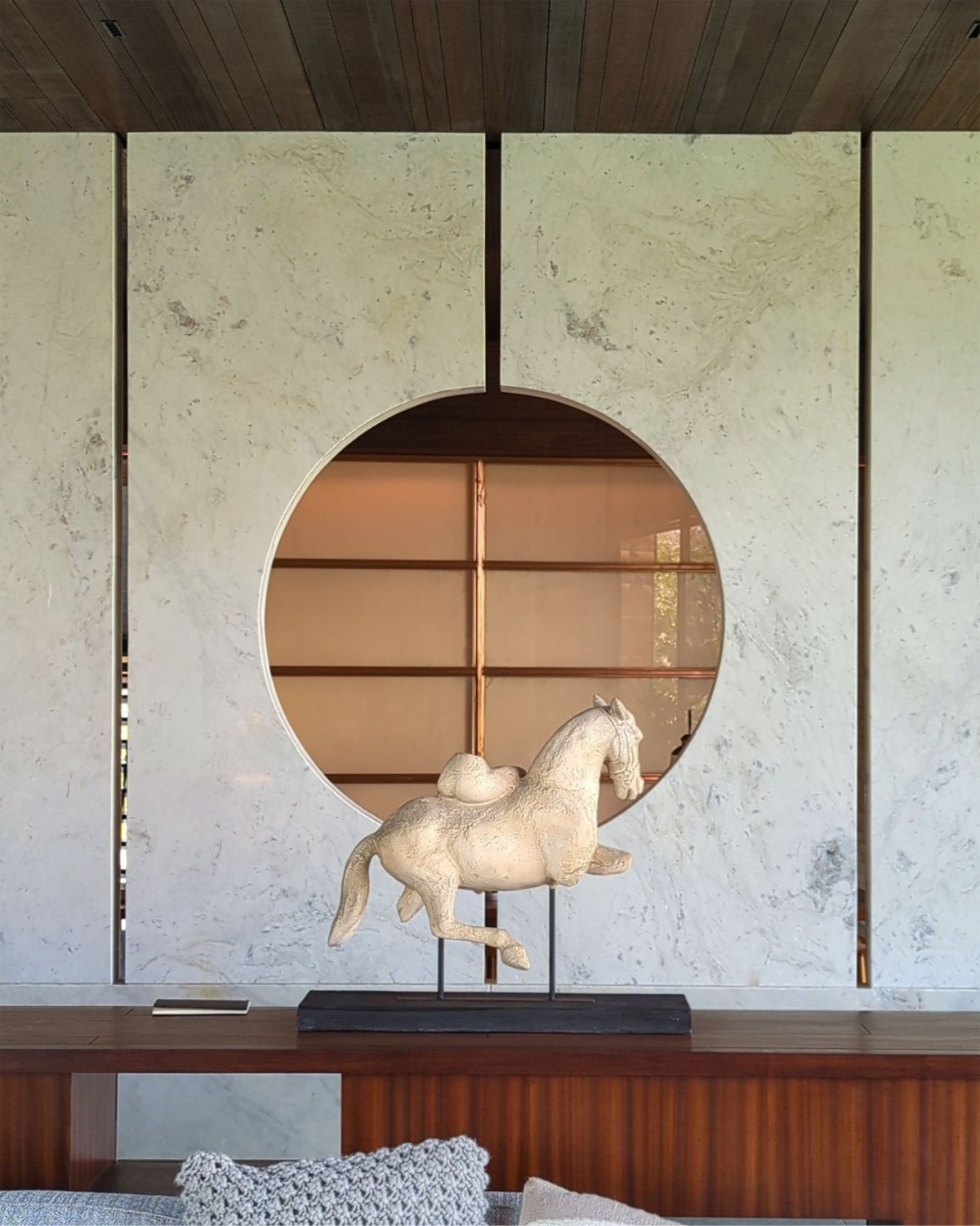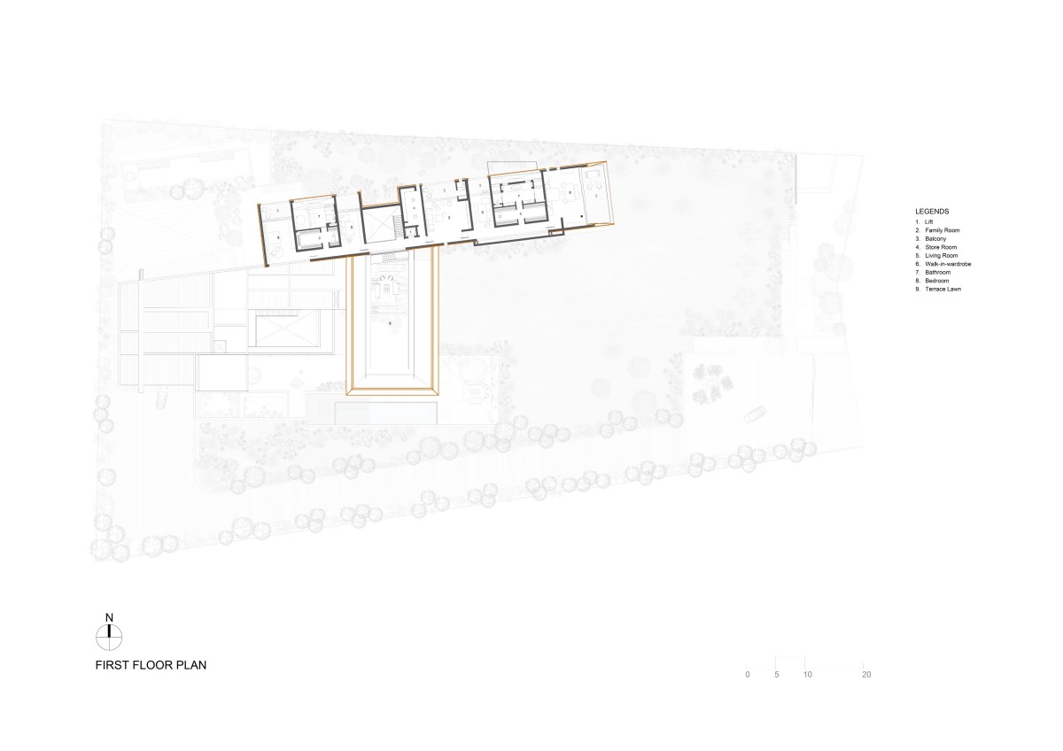An endearing exploration of spaces below, on and above ground connected by a network of courtyards from intimate to regal, the family has been so forthcoming in realizing a true piece of Architecture. This large multi-generational home occupies a lot of 2.5 acres.