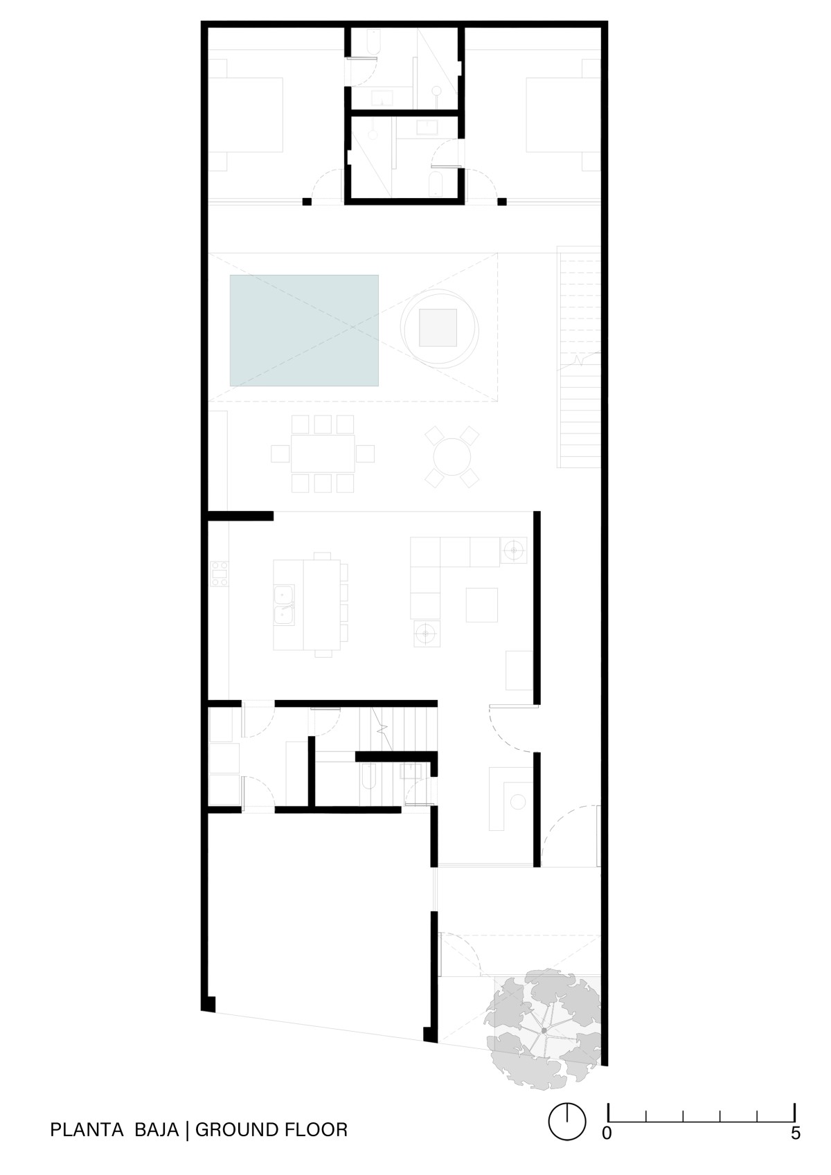 Facing north in its facade towards the cobbled street, a Guamúchil tree living almost on the corner of the lot, many years old, received us trapped between brick walls the first time we visited the property. We decided at that moment that our mission was to free him.