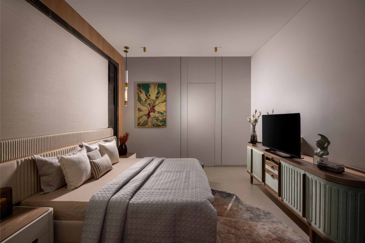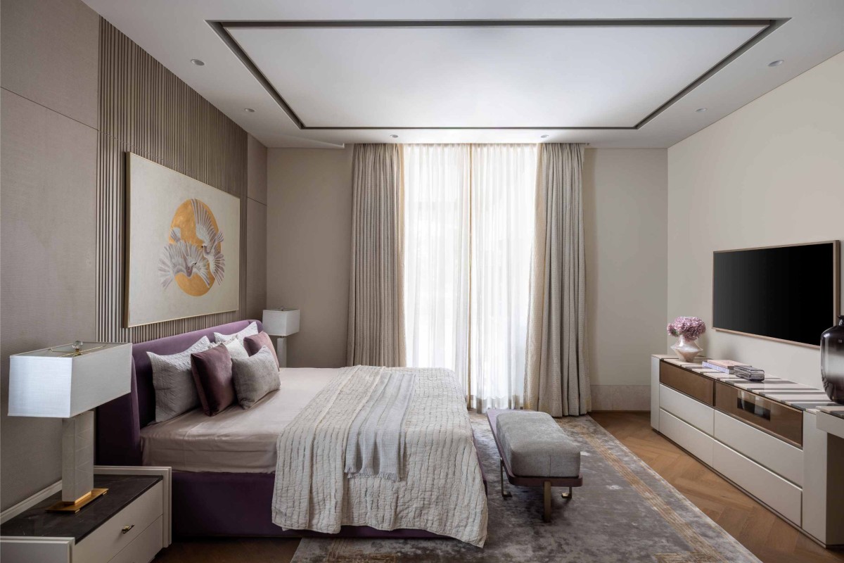 The bedrooms are a fusion of modernity and classicism, blending style with functionality and artistic allure.