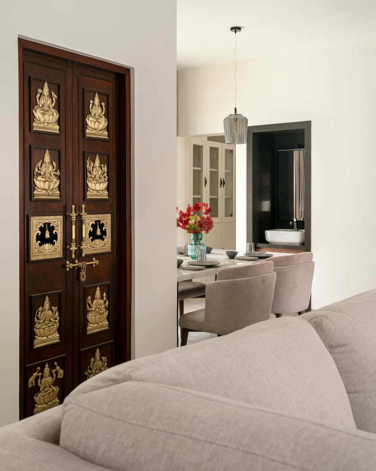 This residence is a reflection of the client’s unique sensibilities and a deep respect for tradition paired with an appreciation for modern clarity. By integrating Vastu-aligned planning with open, spacious interiors, the home meets both functional and spiritual needs without compromise. Including subtle stainless steel accents gave the house a personal touch rooted in their own history. The result is a home that is not only visually balanced and serene but also deeply connected to the client's values and lifestyle.