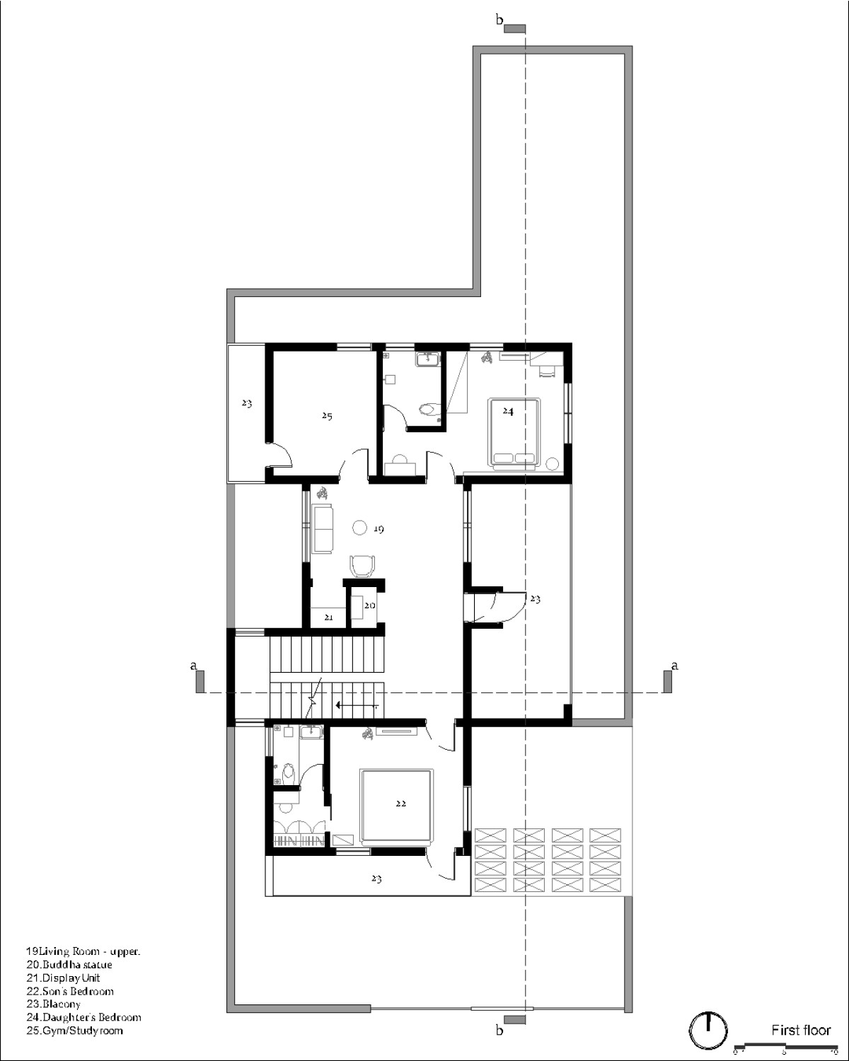 First Floor Plan of Deepa Residence by Grid Studio