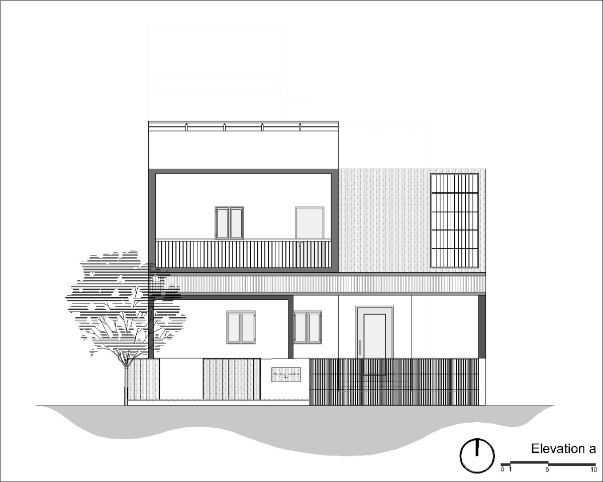 Front Elevation of Deepa Residence by Grid Studio