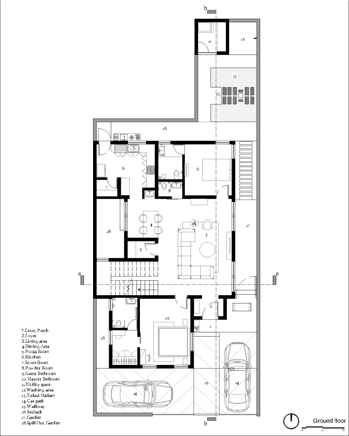 Ground Floor Plan of Deepa Residence by Grid Studio