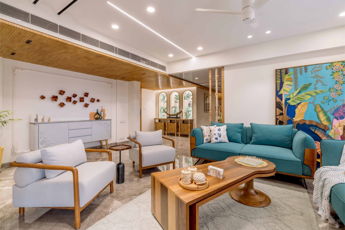 Living room of Dhandharia’s Residence by 9 Degree Design Studio