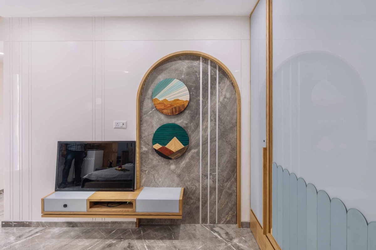 TV Unit of Dhandharia’s Residence by 9 Degree Design Studio