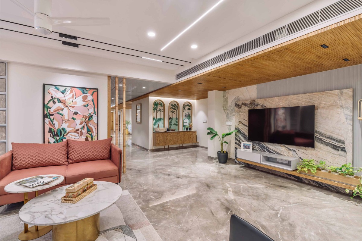 Family living of Dhandharia’s Residence by 9 Degree Design Studio