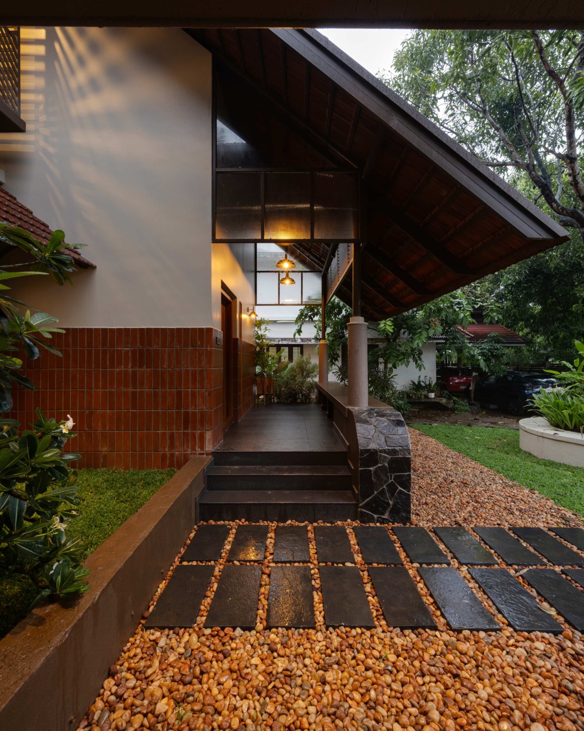Dusk light exterior view of Eden Moss by Urbane Ivy