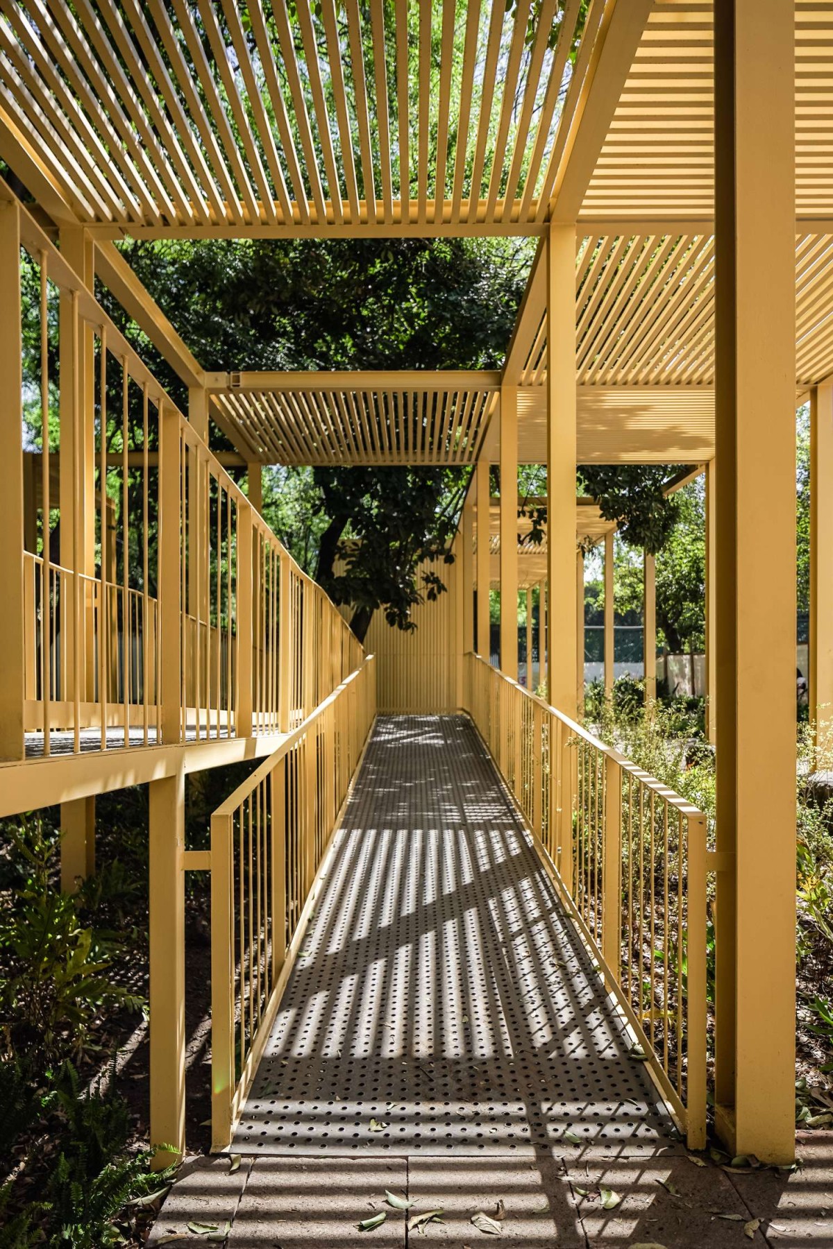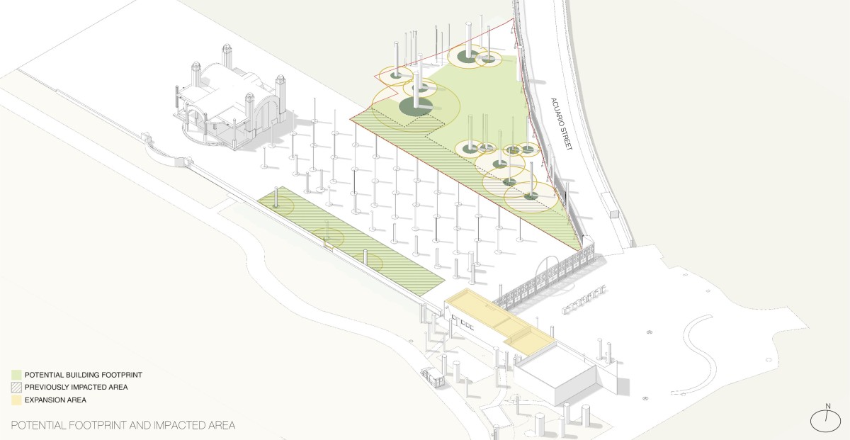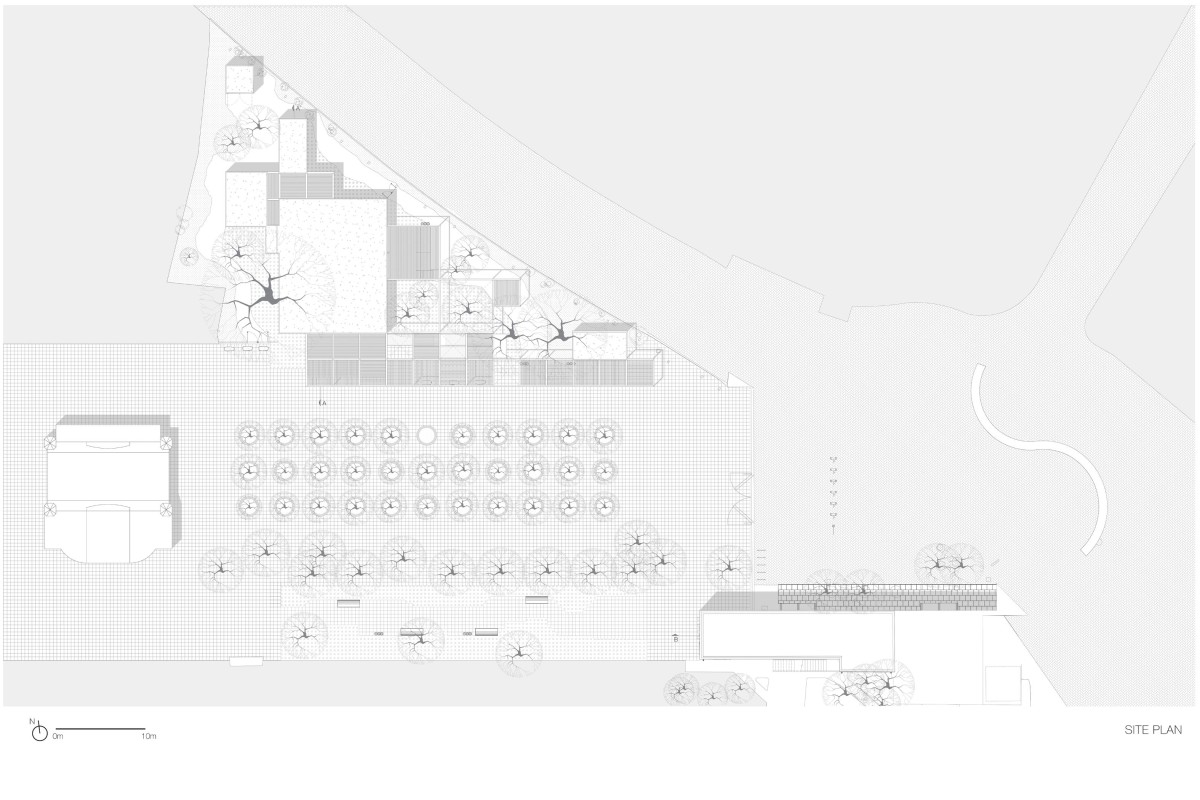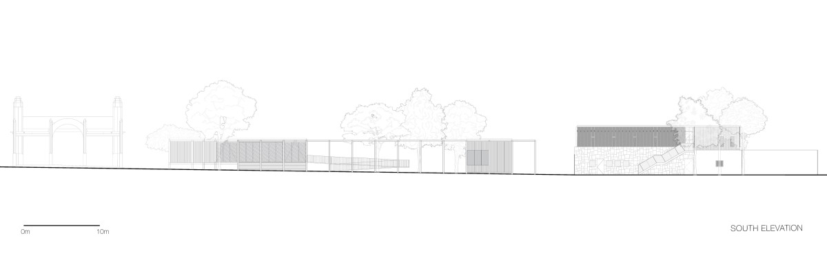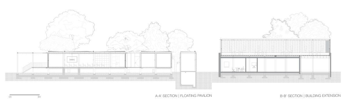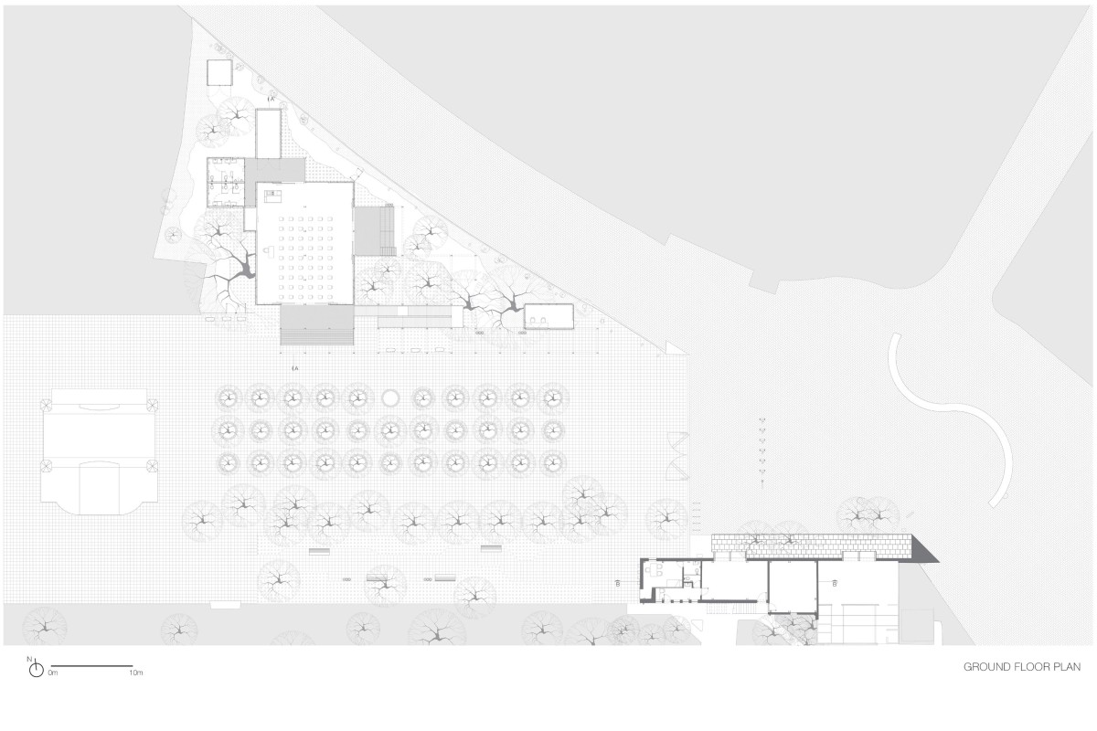 The architectural interventions are located at the entrance of the Chapultepec Zoo: at the north section the floating pavilion and at south, the expansion, complementing one another. Two main site conditions played an important role within the design intentions and strategies for the pavilion: the site presented an important number of trees to preserve, among them, one of the oldest ash trees within the zoo, and the site had to preserve its potential of introducing water to the underground. Based on that the project proposes open modular cubes to be used as building blocks, just as the artwork by Sol LeWitt. The open cubes are deployed naturally along the site extension aiming at defining and blurring the limits of the structure in its dialogue with its surroundings. 56 modules are grouped to accommodate walkways, corridors, stairs, ramps, an open amphitheater, a multipurpose space, a front desk and reception area, restrooms, machine room, among others. The main program components are elevated 90 centimeters from the ground level to ensure minimum building contact ensuring soil permeability.