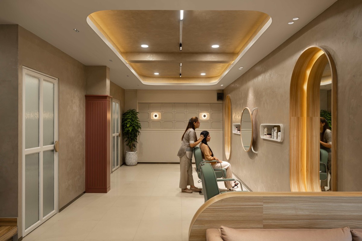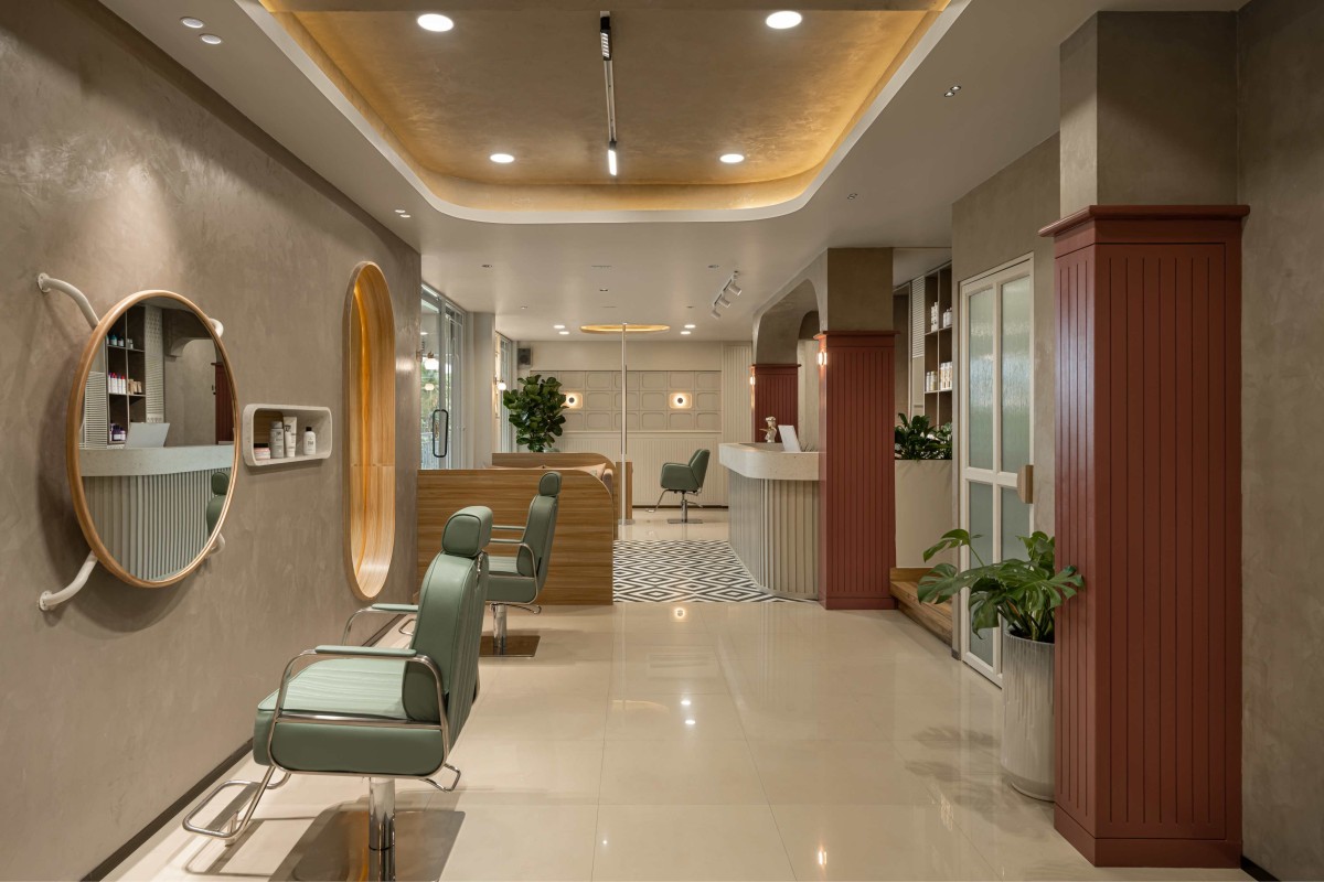 A contemporary salon in Cochin designed to embody minimal luxury through refined detailing, tactile materials, and soft spatial geometry, Exxude – Styling Lounge reimagines the idea of everyday indulgence within a compact urban footprint.