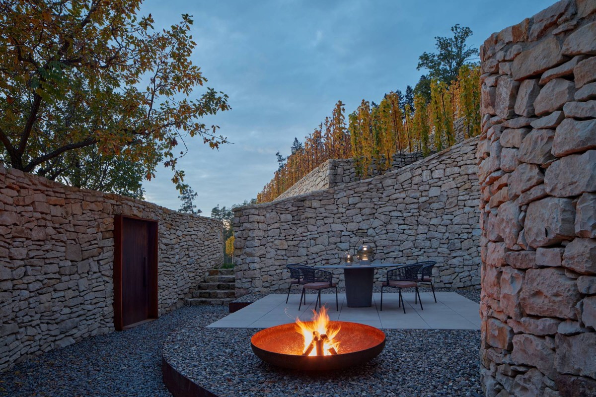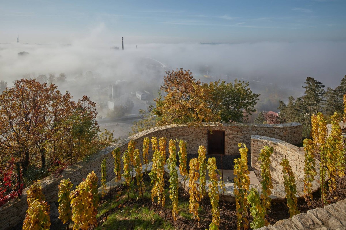 Guided by history the goal was to bring back the romantic antiquity of the vineyard gardens. Driven by their southern European roots, the architects proposed a creation of an idyllic patio, which would allow its users to lose the relation with the bohemian capital city.