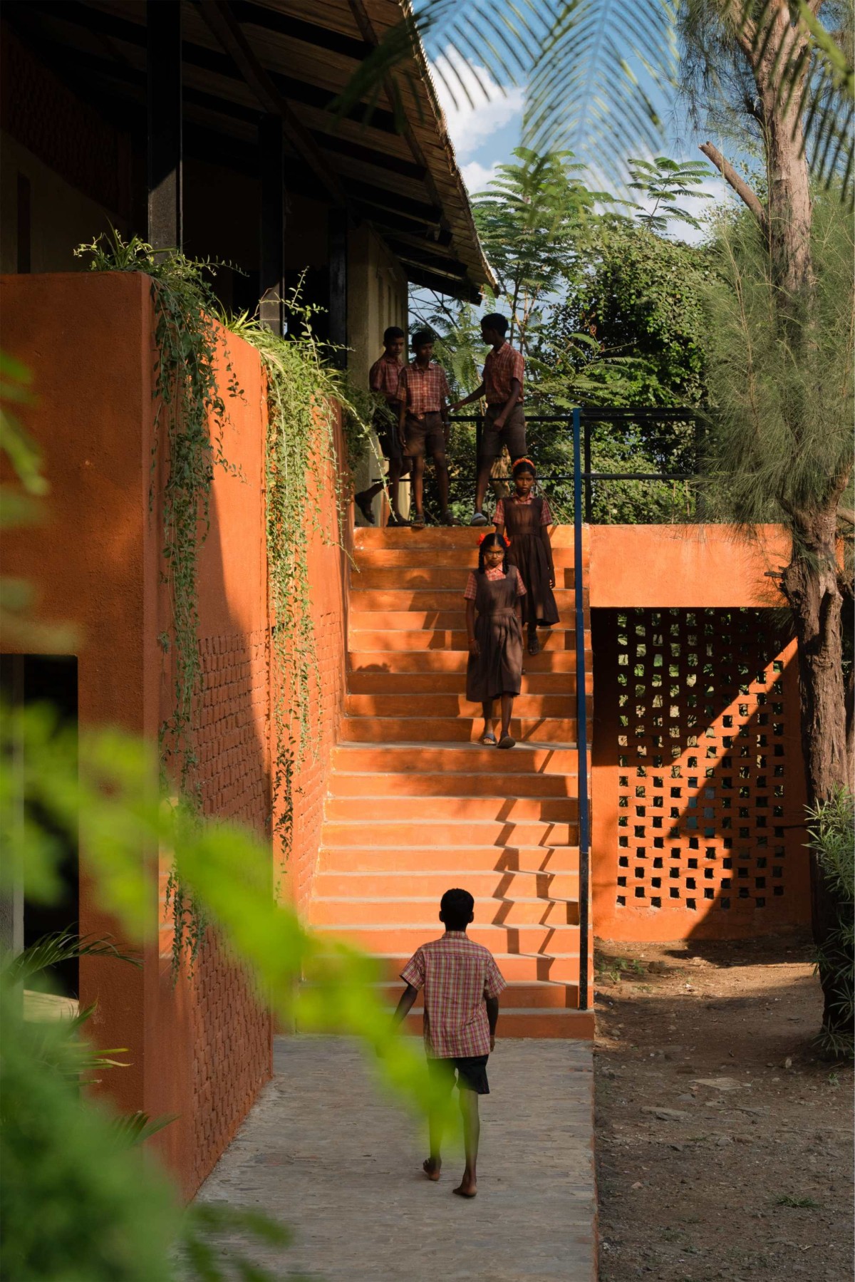External Staircase of Flood Affected School at Kelthan Village by unTAG Architecture and Interiors