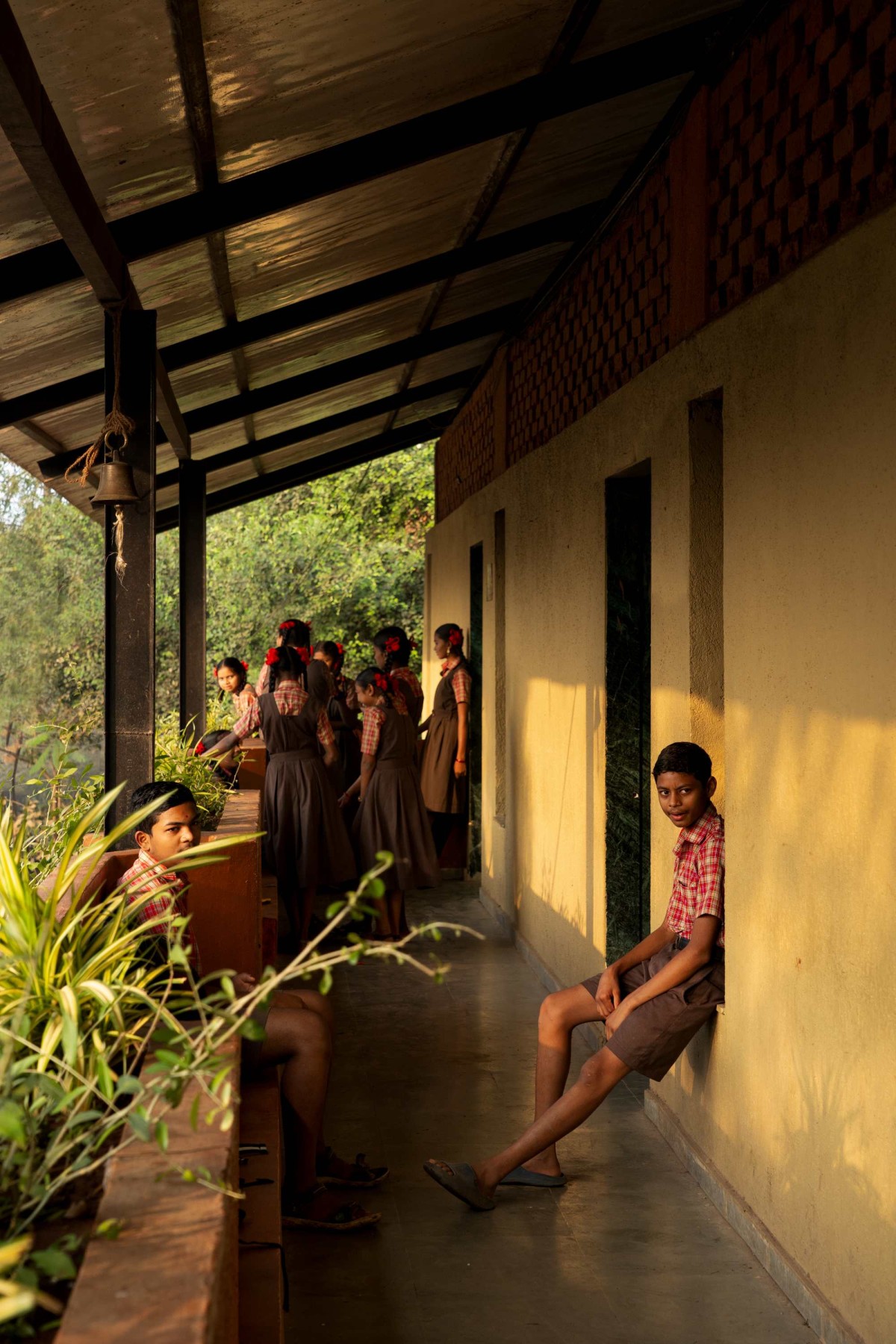 Passage Sitouts & planters of Flood Affected School at Kelthan Village by unTAG Architecture and Interiors