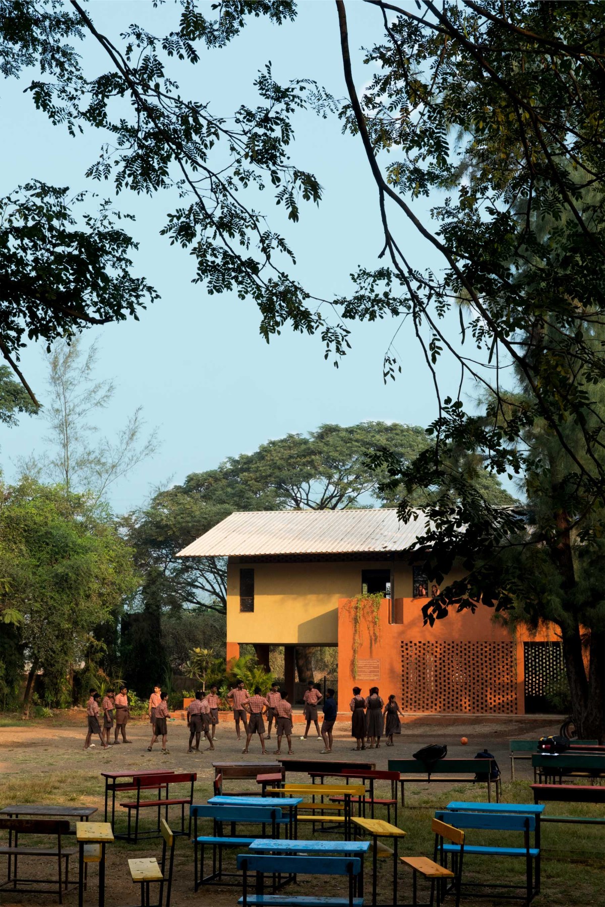 Exterior view of Flood Affected School at Kelthan Village by unTAG Architecture and Interiors
