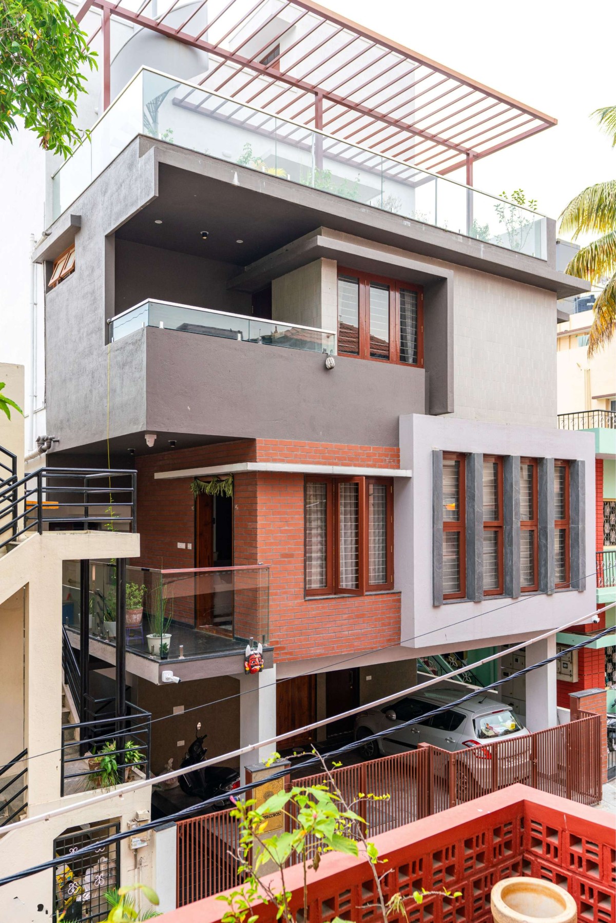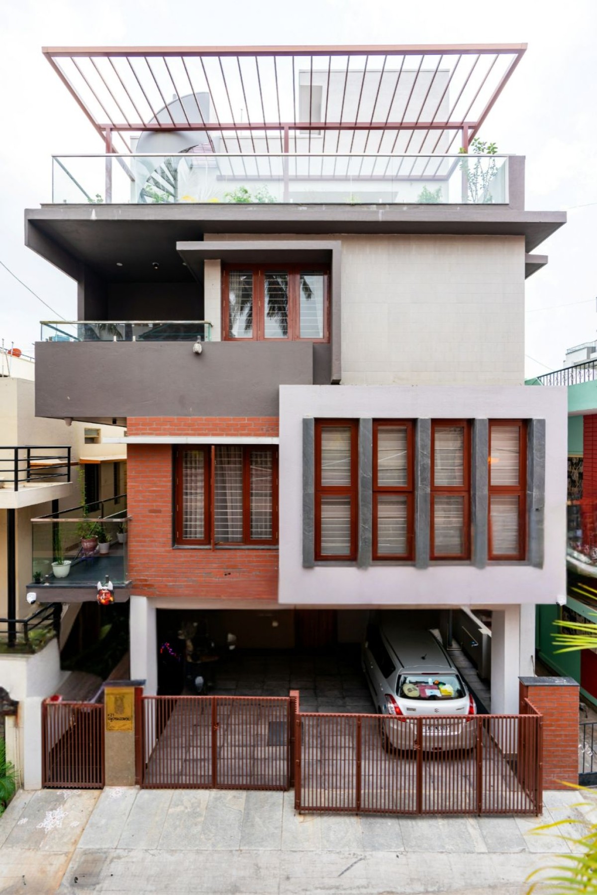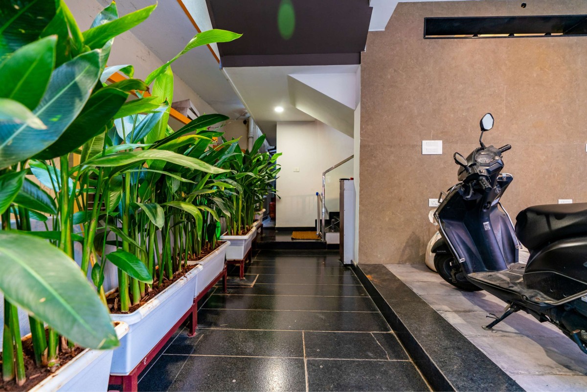 Parking & Entry court of Gallery House by Space Poetics