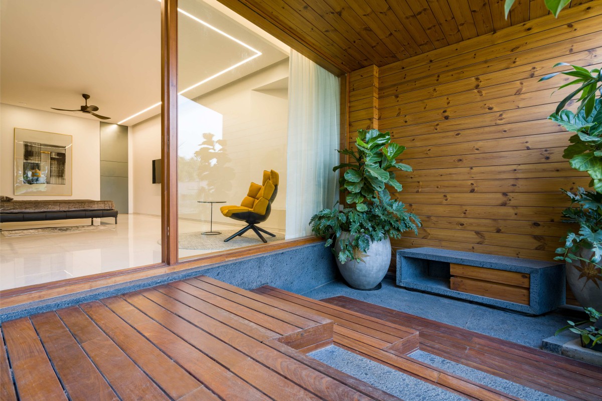 Living room of Gauribidanur Residence by Cadence Architects