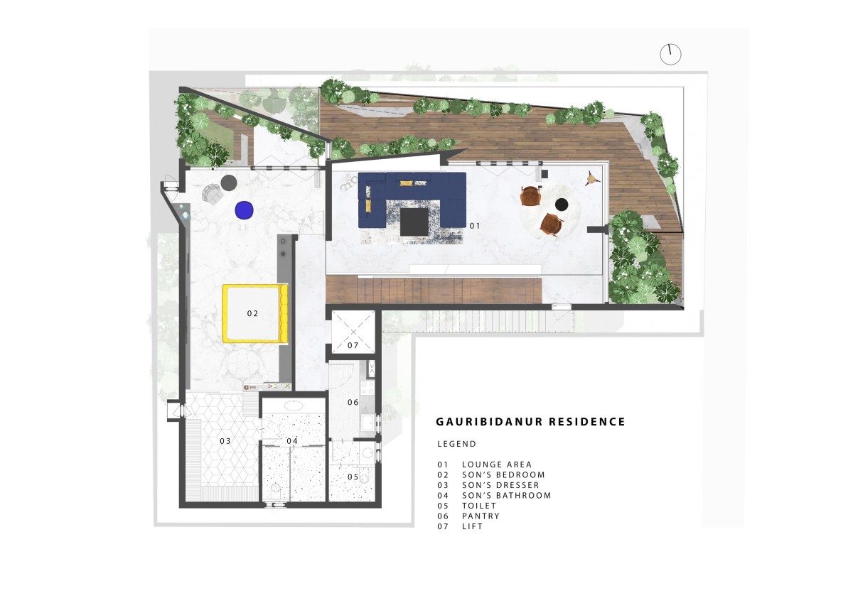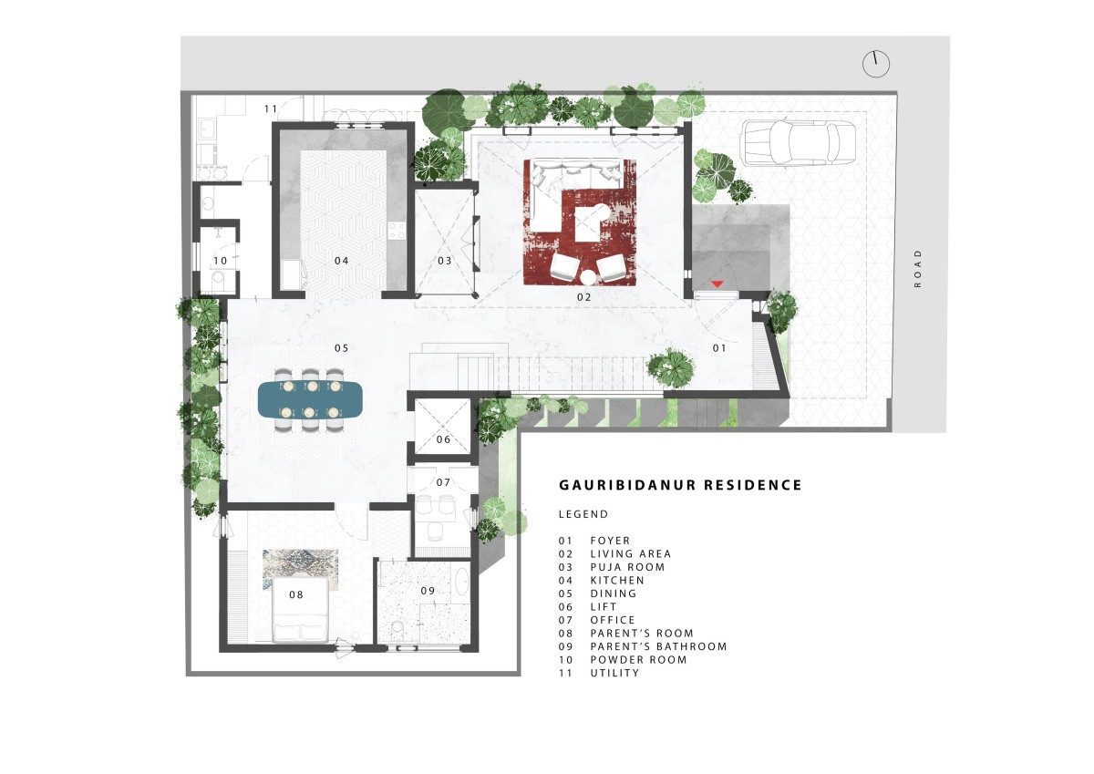 Ground Floor Plan of Gauribidanur Residence by Cadence Architects