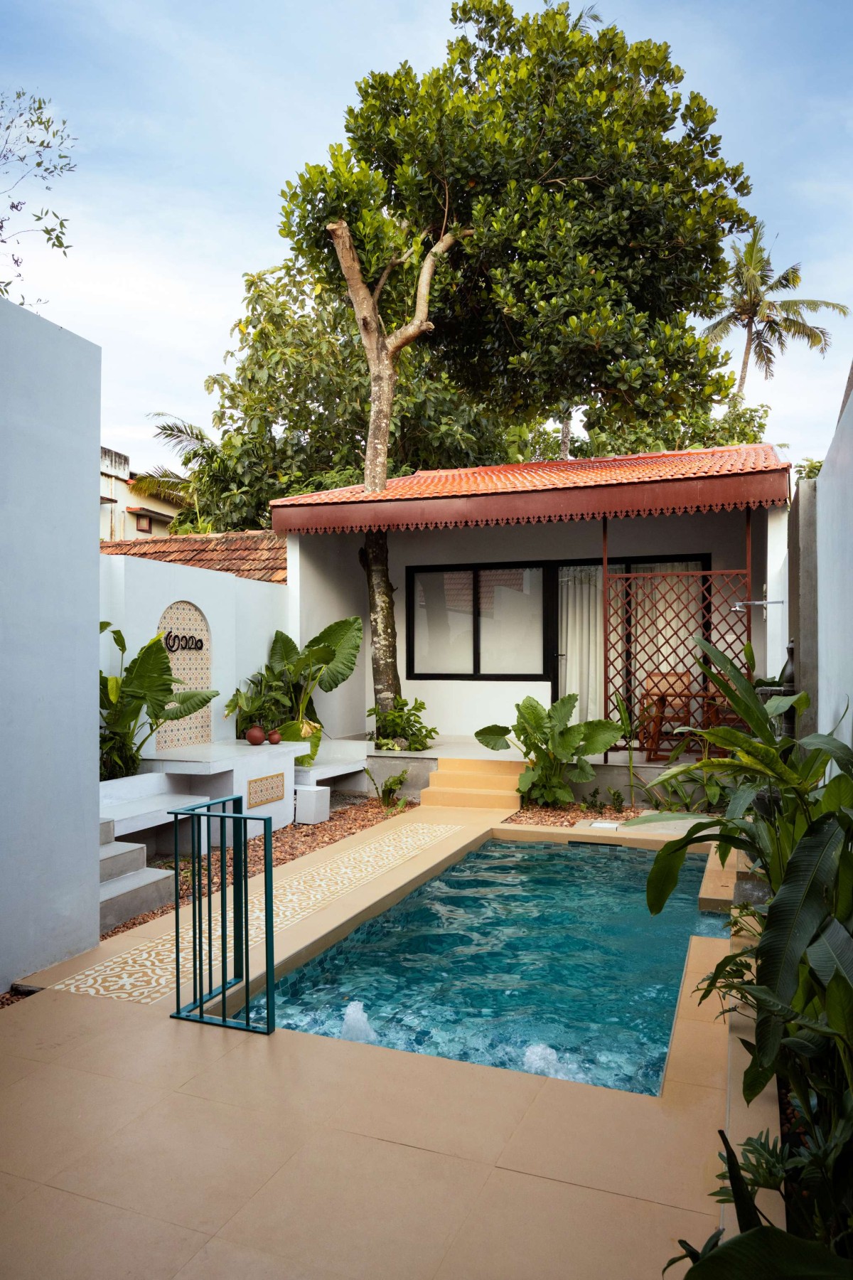 Wooden elements, kolam motifs, and handcrafted details are complemented by landscaping and visual cues drawn from familiar regional flowers such as thetti and hibiscus. These elements subtly reinforce the project’s name—Gramam—anchoring it firmly in a sense of place and collective memory.