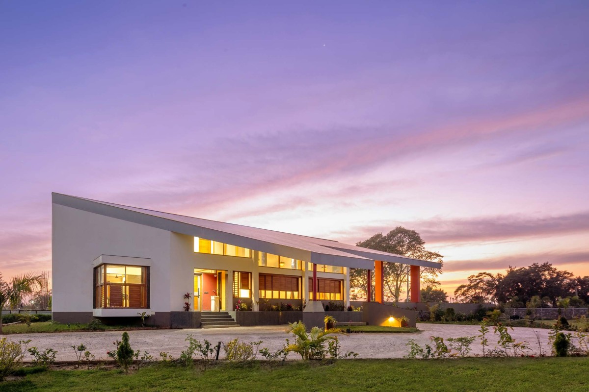 Dusk light exterior view of House at Randheja by Studio 4000