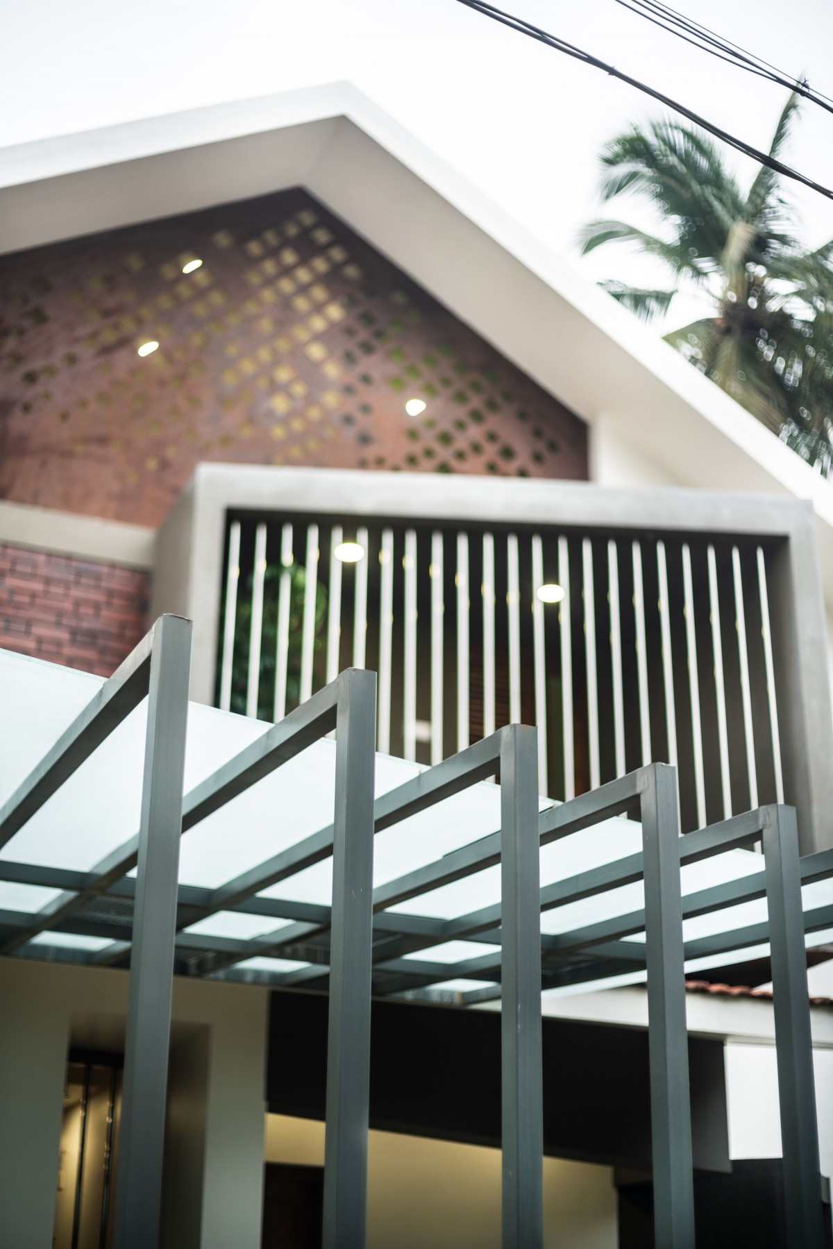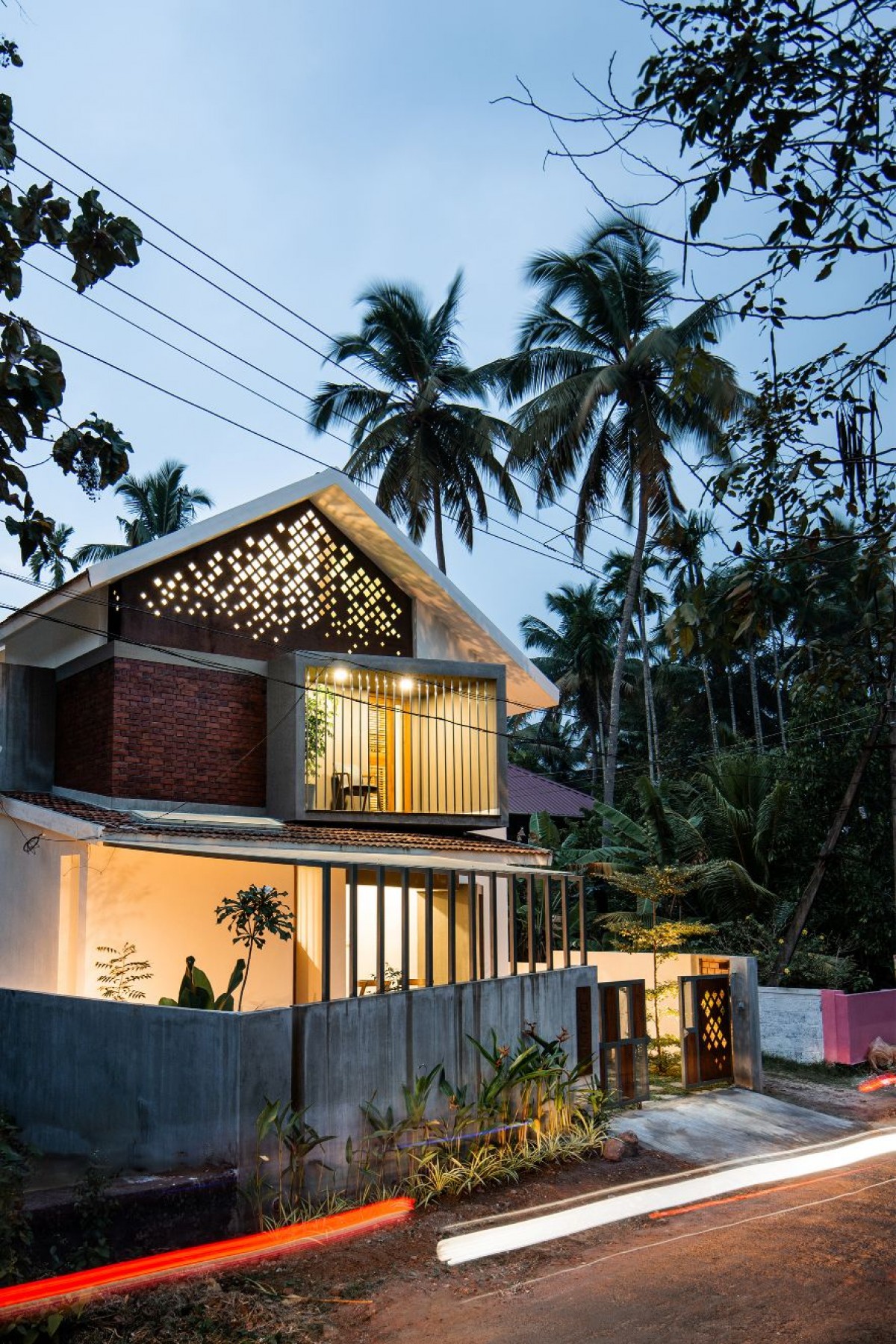 House Dyuthi is located in Parakkad suburbs situated a few kilometers from Thrissur city, cultural capital of Kerala. Site has a narrow profile of 32ft X 72ft, and is situated in a residential neighborhood. Challenge was to accommodate all requirements of home to the narrow plot. Design Strategy was to have a series of spaces that is connected by a central axis, thus reducing the circulation area and ensuring connectivity. Through programmatic zoning a linear stacked volume was formed.