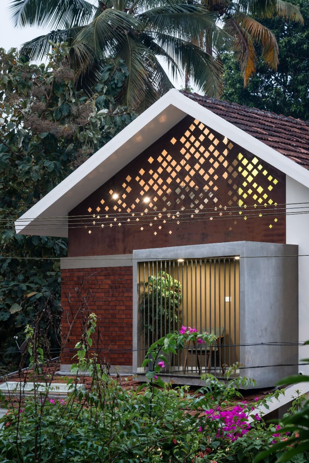 environment. Perforated Corten steel ornate the interiors with moving patterns
