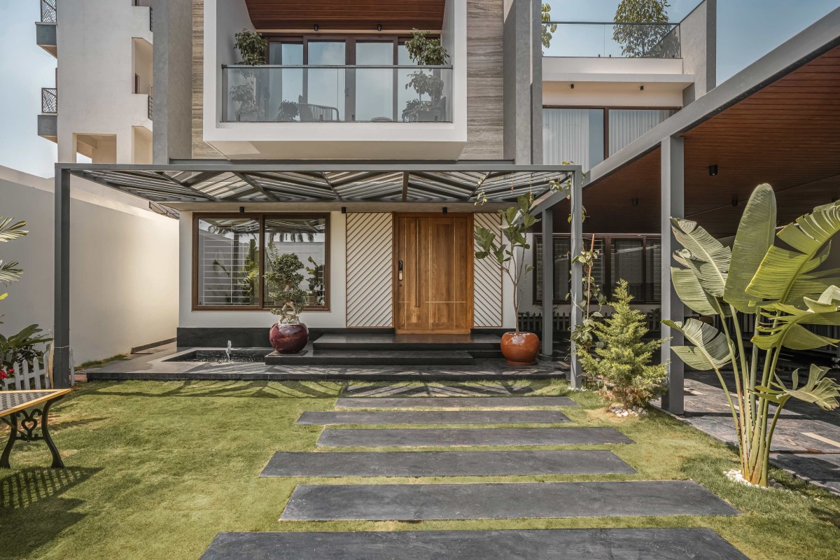 Neeranjanam is a thoughtfully designed residence for a family of four who sought a contemporary home rooted in the cultural sensibilities of their Kerala heritage. Located on a 41’x112’ plot in Bangalore’s Electronic City, the site offered a peaceful setting within a well-established residential neighbourhood. The design approach centred on clean, modern forms and a curated palette of materials. Each choice subtly echoes the family's values and the essence of home.