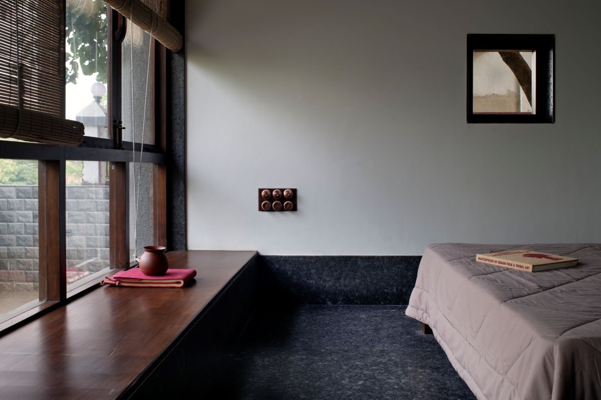 In the midst of building their 185-square-metre home in a village near Pune, India, the client approached Karan Darda Architecture (KrDA). Their job was relatively simple to take the client’s nostalgic memories from their childhood home, and engrain its threads into this one. And the House of the Serene Past started to take shape. “The client wanted this house to be a place for relaxation, where his family could come and enjoy holidays or weekends, referencing his childhood traditional Maharashtrian home”. “We decided our design would be something which would connect him back to the roots of a traditional house,” which KrDA explored through a contemporary Indian design lens. At this stage, you’re probably wondering, what makes a house Maharastrian?    Aside from the aroma of mustard seeds and curry leaves wafting from their kitchens, Maharastrian homes are typified by stone walls, wooden staircases and open chowks (internal courtyards).
