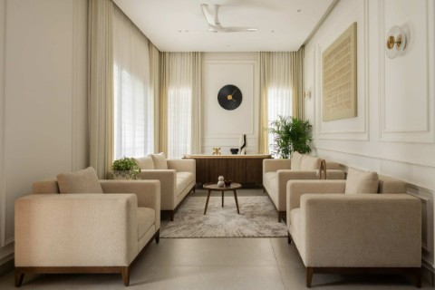 The semi-outdoor spaces and open courts are a contemporary take on traditional courtyards. They regulate the microclimate and create a dialogue between the indoor and outdoor environment. They are not limited in design as each space offers the complete vertical field of view from the land to sky which is very important in evoking the calmness of the mind.