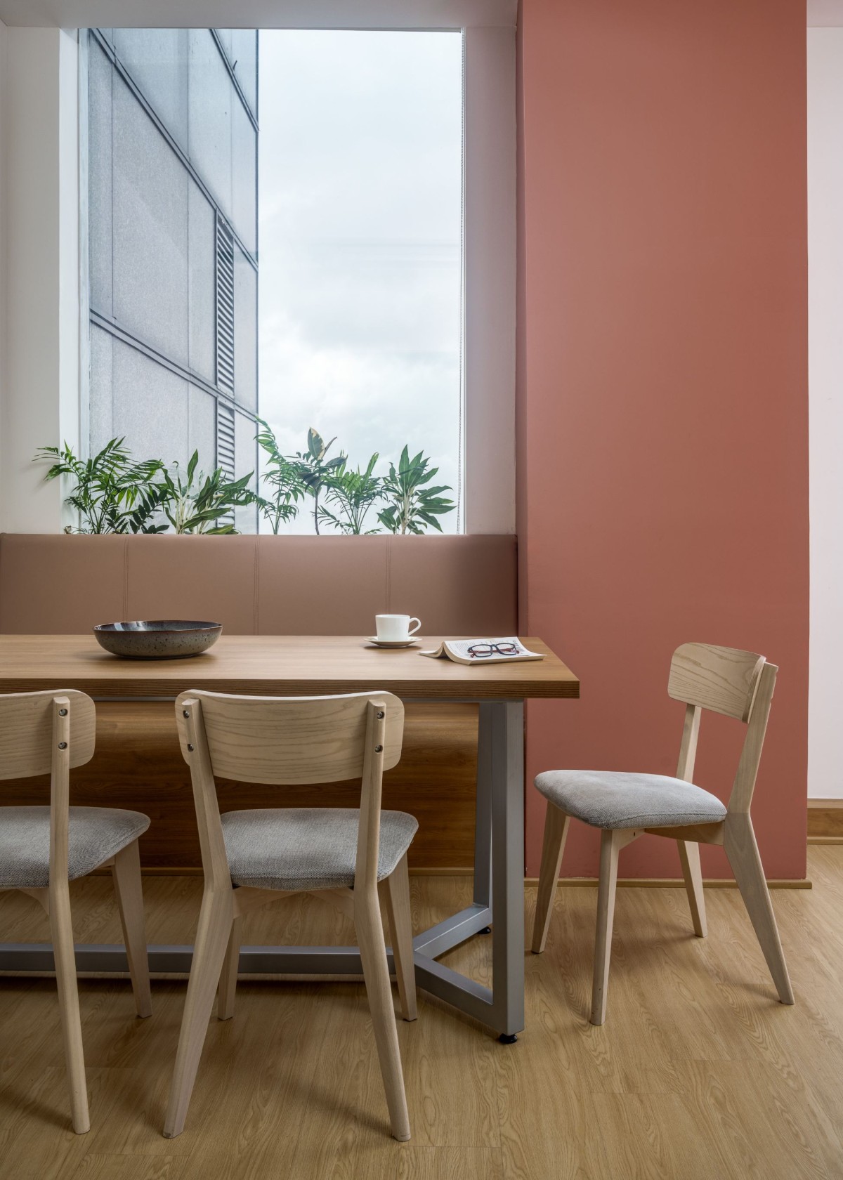 “With its open layout and tactile finishes, the cafeteria sets a welcoming rhythm, a pause point in the workspace where design invites connection.”– Ar. Masoom jindal Soft tones, clean lines, and thoughtful textures come together in this space where comfort meets elegance. Subtle pops of the colour and natural light breathe life into the design, creating an inviting atmosphere effortlessly balancing minimalism with vibrant warmth Turnkey 5.0 has designed in such a way that the space naturally supports both focus and interaction, blending aesthetic simplicity with everyday practicality.