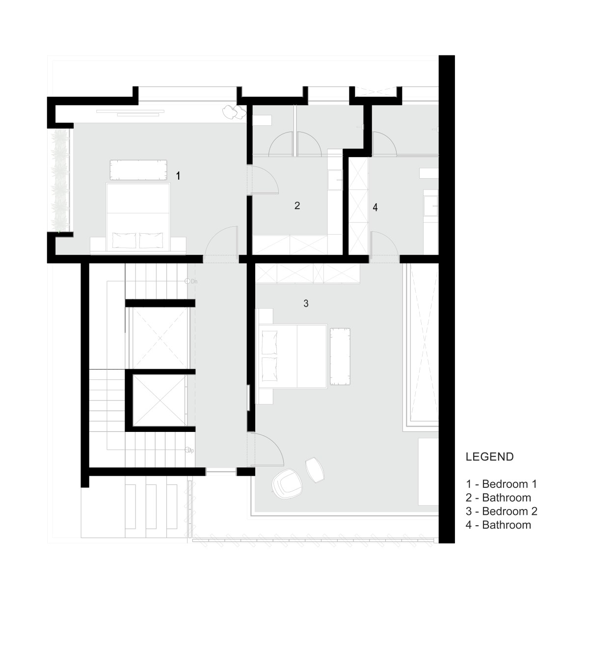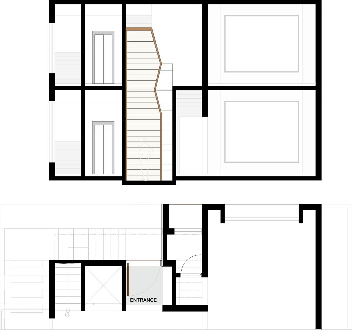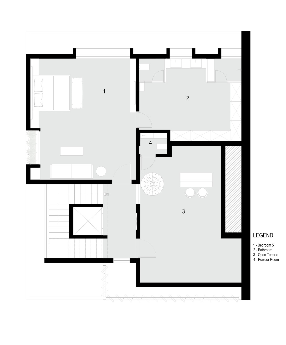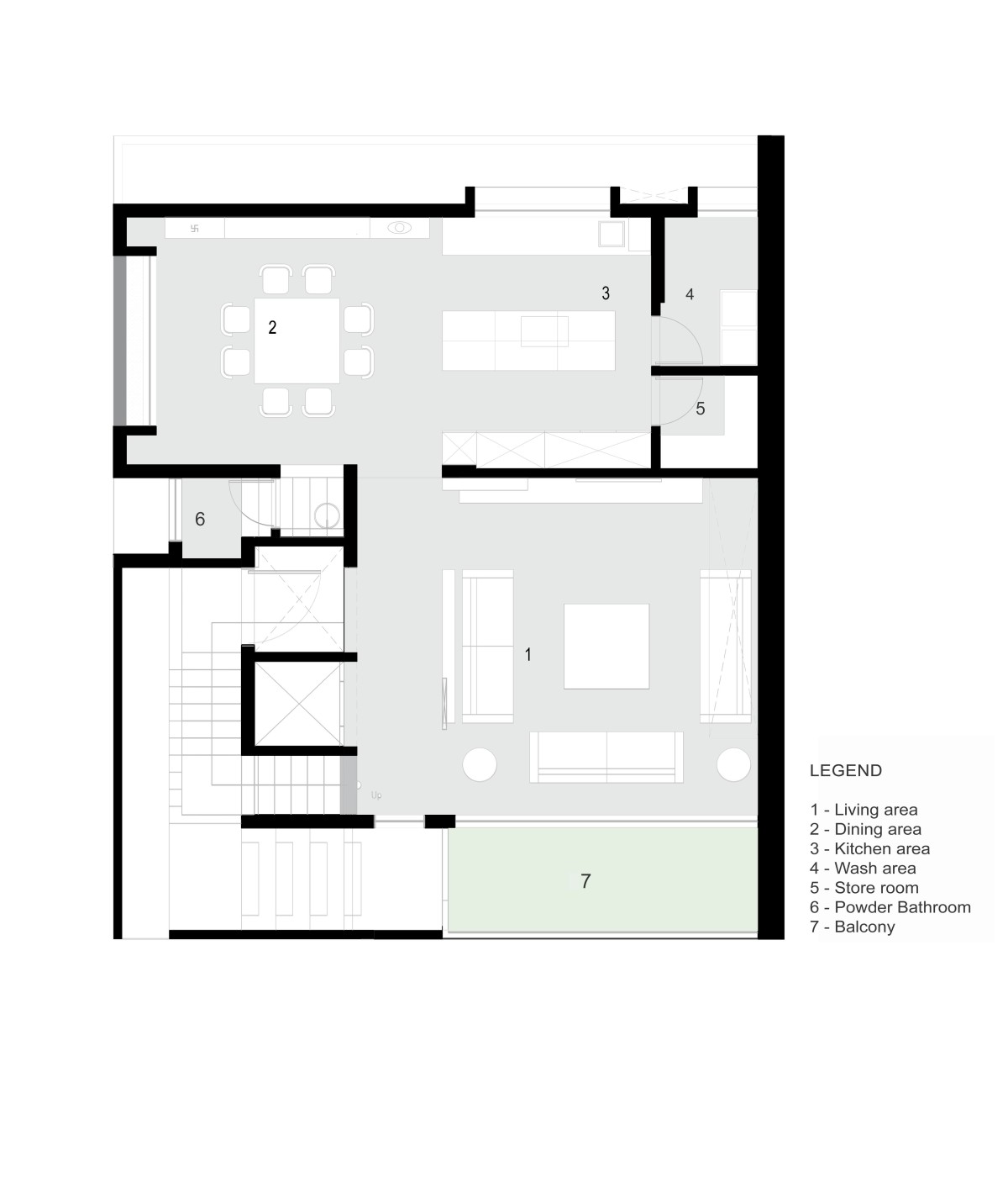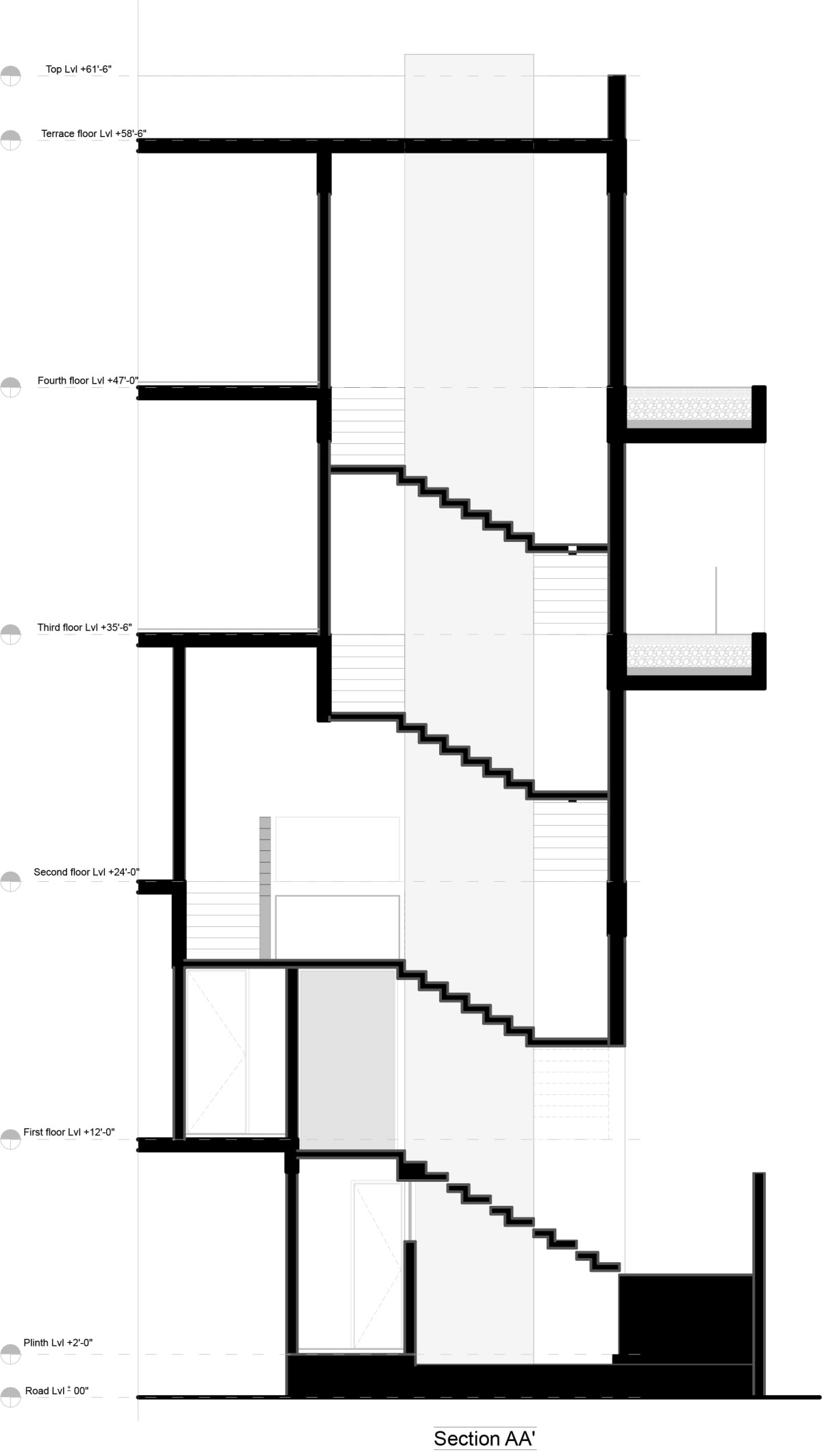 The client wanted a house with large parking space and voluminous rooms which invites ample daylight. Given the size of the plot, we decided to use ground floor as parking space and started planning from the first floor. That gives us a beautiful semi-open staircase which takes us from ground floor to first floor main entrance. You will notice that the staircases are not aligned on top of each other and to make it even more interesting we have designed a main door which has 20’ height. The main door is visible from the first-floor passage.