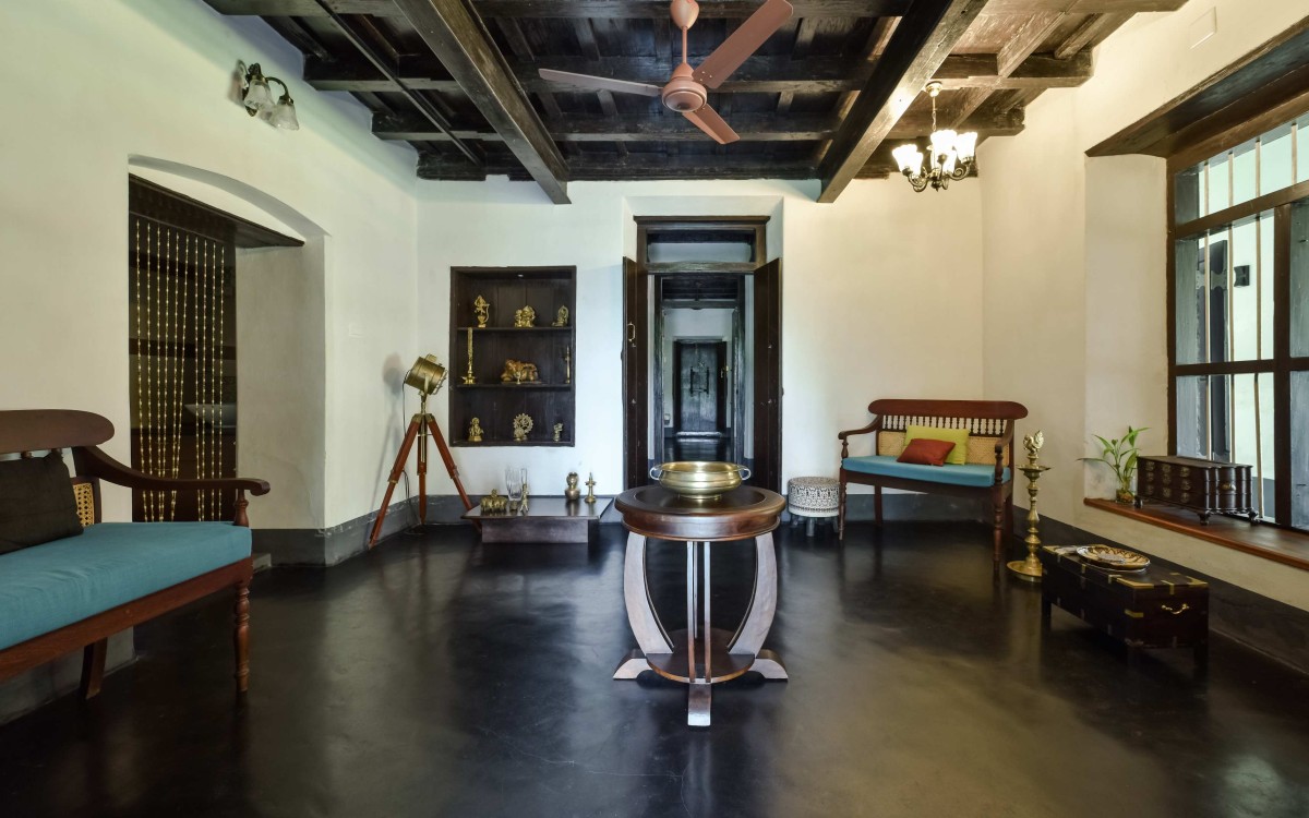 When a retired naval captain, Rajeev, and his partner Anupama Rajeev, who have spent a significant time of their lives in different cantonments and have shifted multiple homes across the country, desired to have a more peaceful relaxed life in a calm setting away from the city, they chose to restore the 200-year-old bungalow at Paravoor. They had to breathe life back into the property, as the house felt like a true sanctuary surrounded by nature, notably the river Periyar, which runs next to the site. To accommodate a family of three generations- the couple, their old parents, and their two children- a new block, sharing a wall with the old structure had to be integrated and availed with new facilities. However, the additional block is designed to meld with the original structure, lending a harmonious look to the exterior.