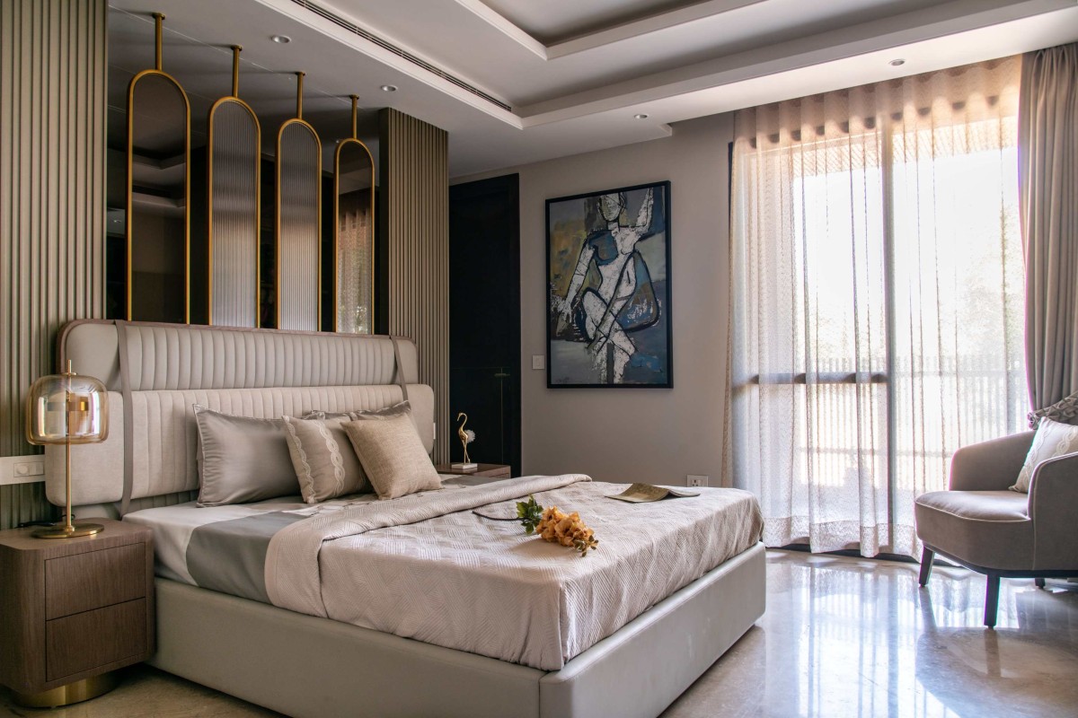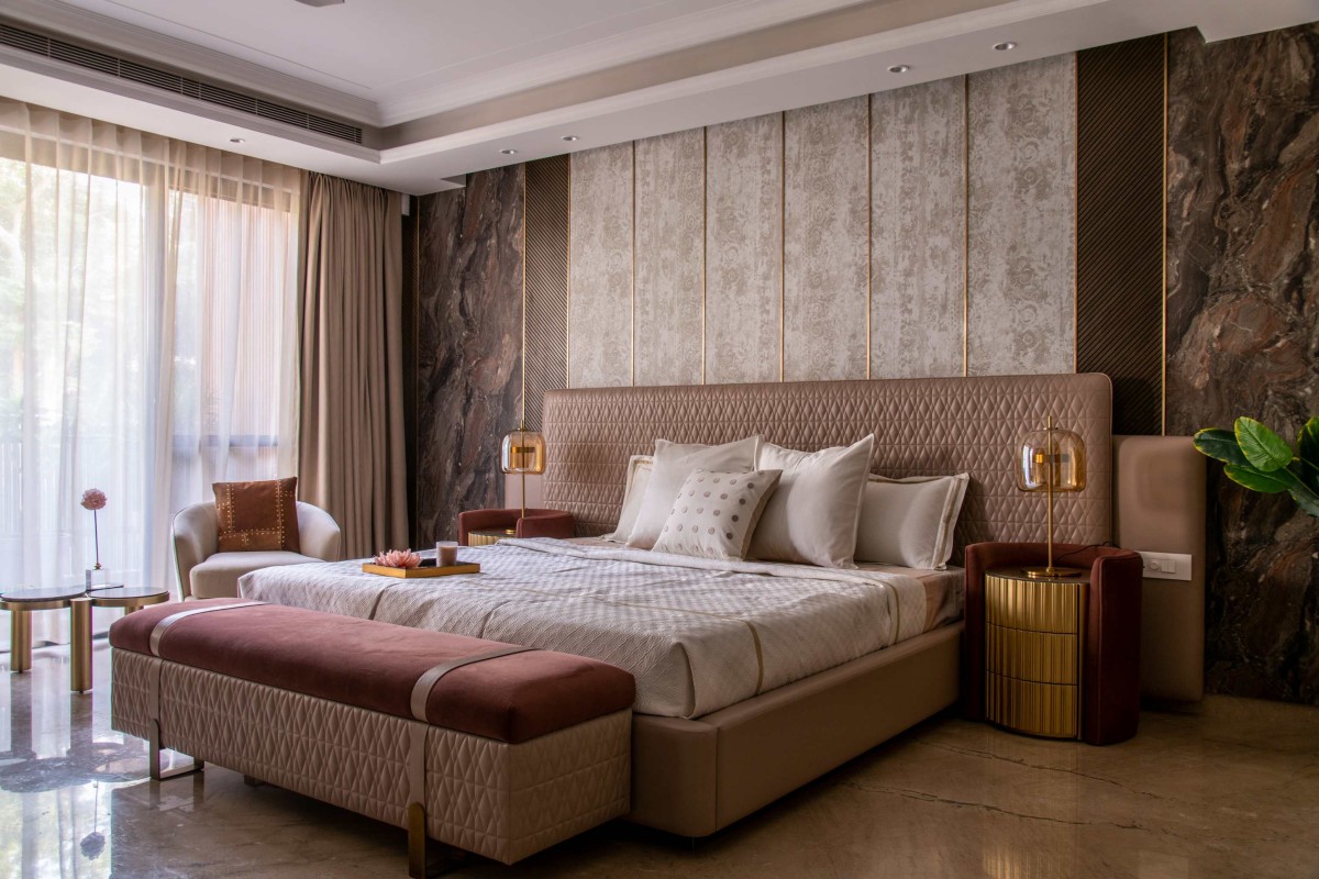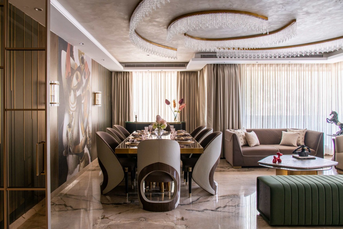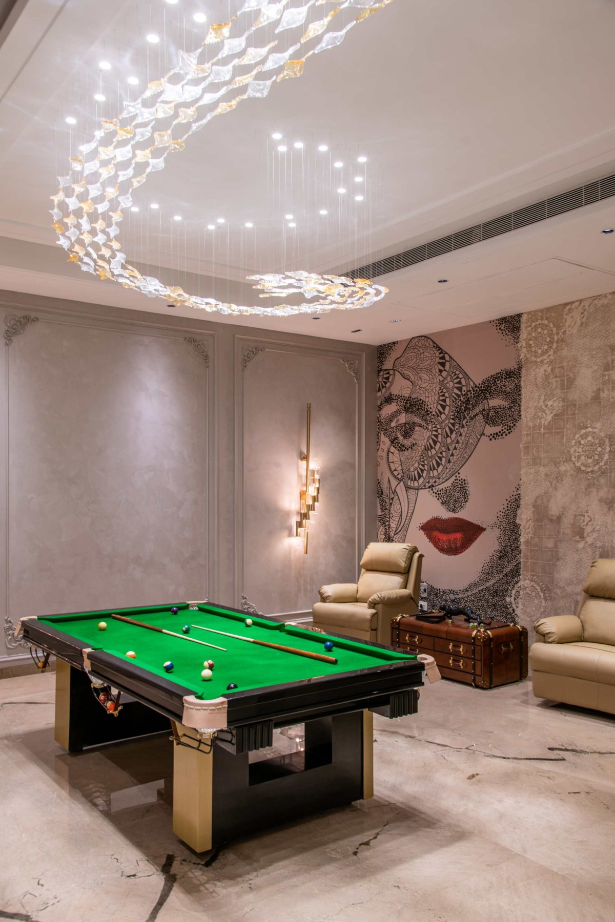 The facade of the building has been designed with a modern touch to keep up with the contextual significance of built environment around Gurugram. The interiors have been planned to give an essence of luxury with elegant building materials. The false ceilings have been designed having fine details of cornices in classical style as a fusion with modern luxury interiors.