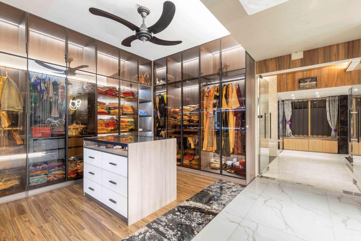 Walk in wardrobe of Nimah Penthouse by Compass Architects