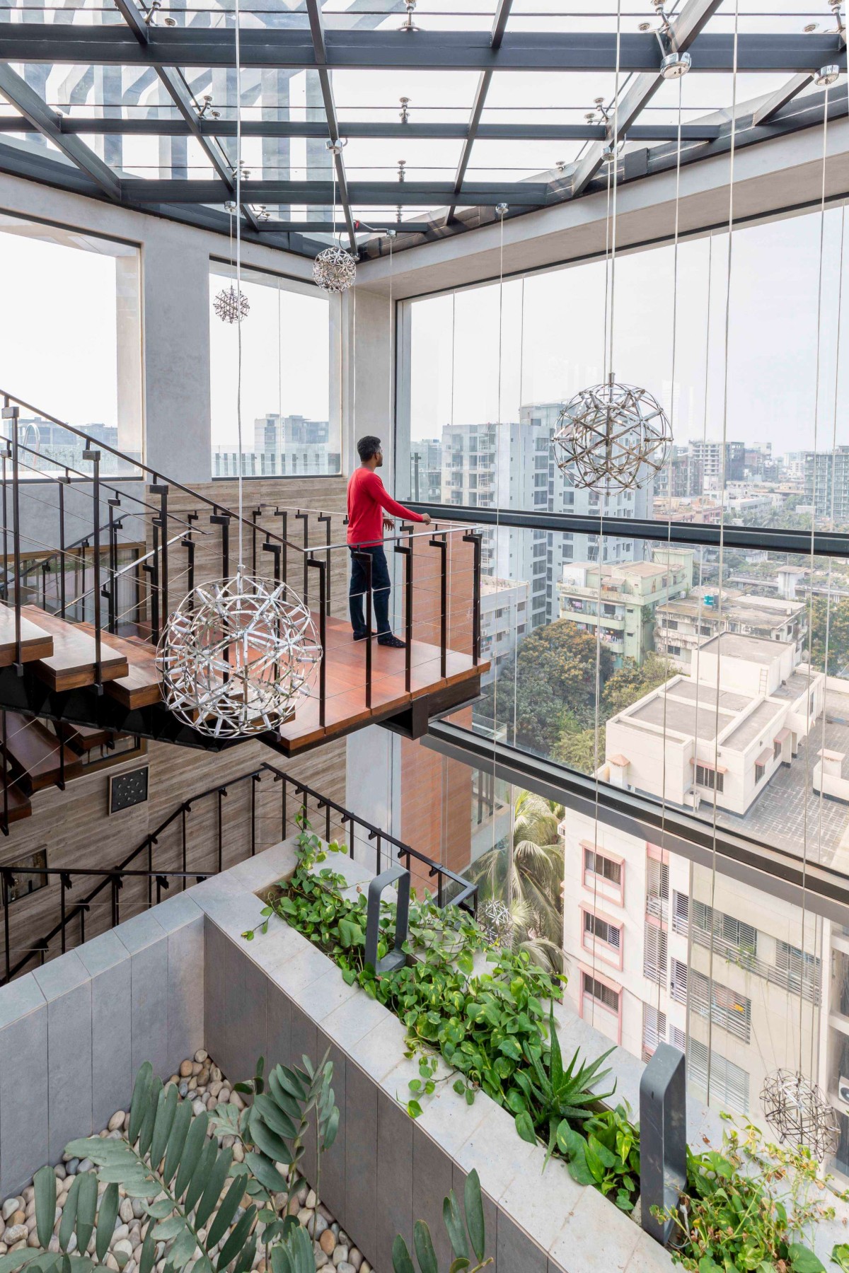 View from staircase of Nimah Penthouse by Compass Architects