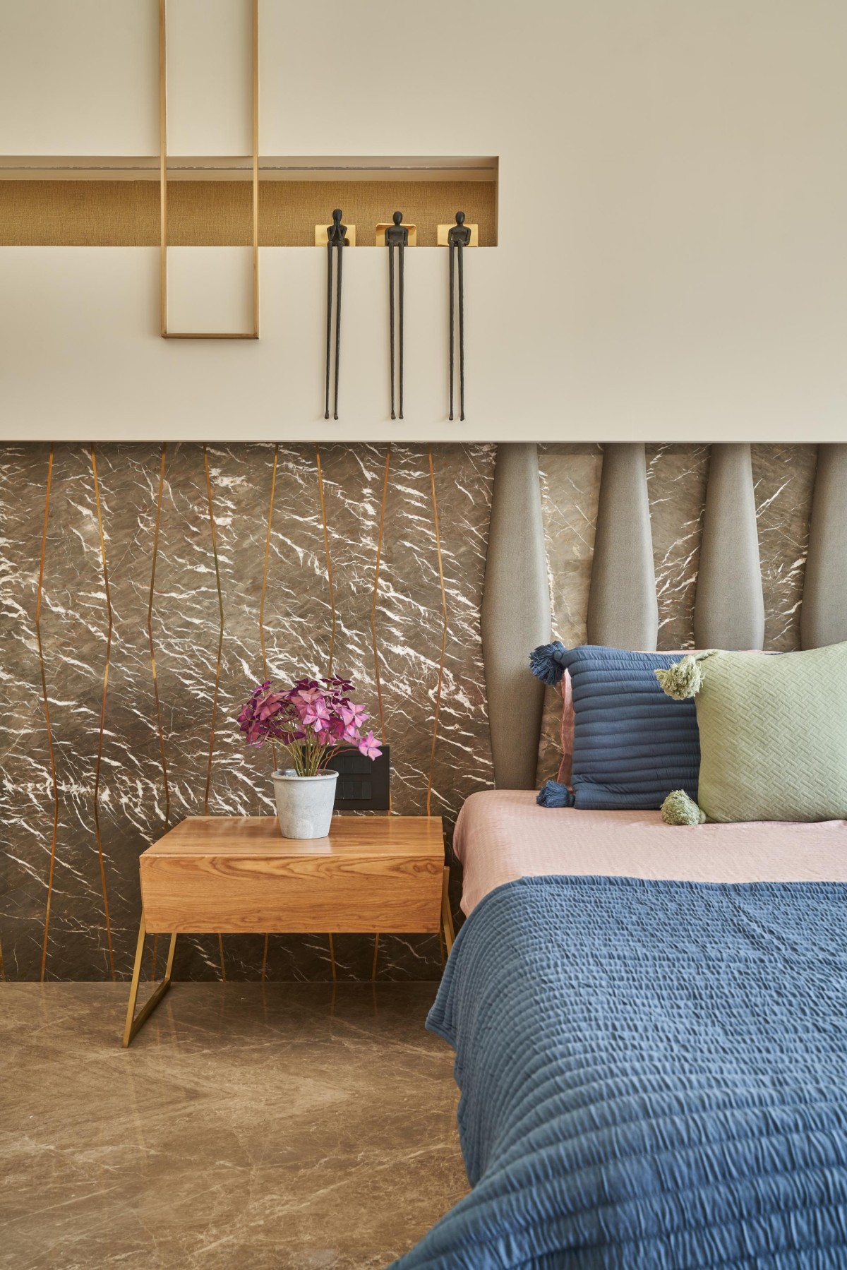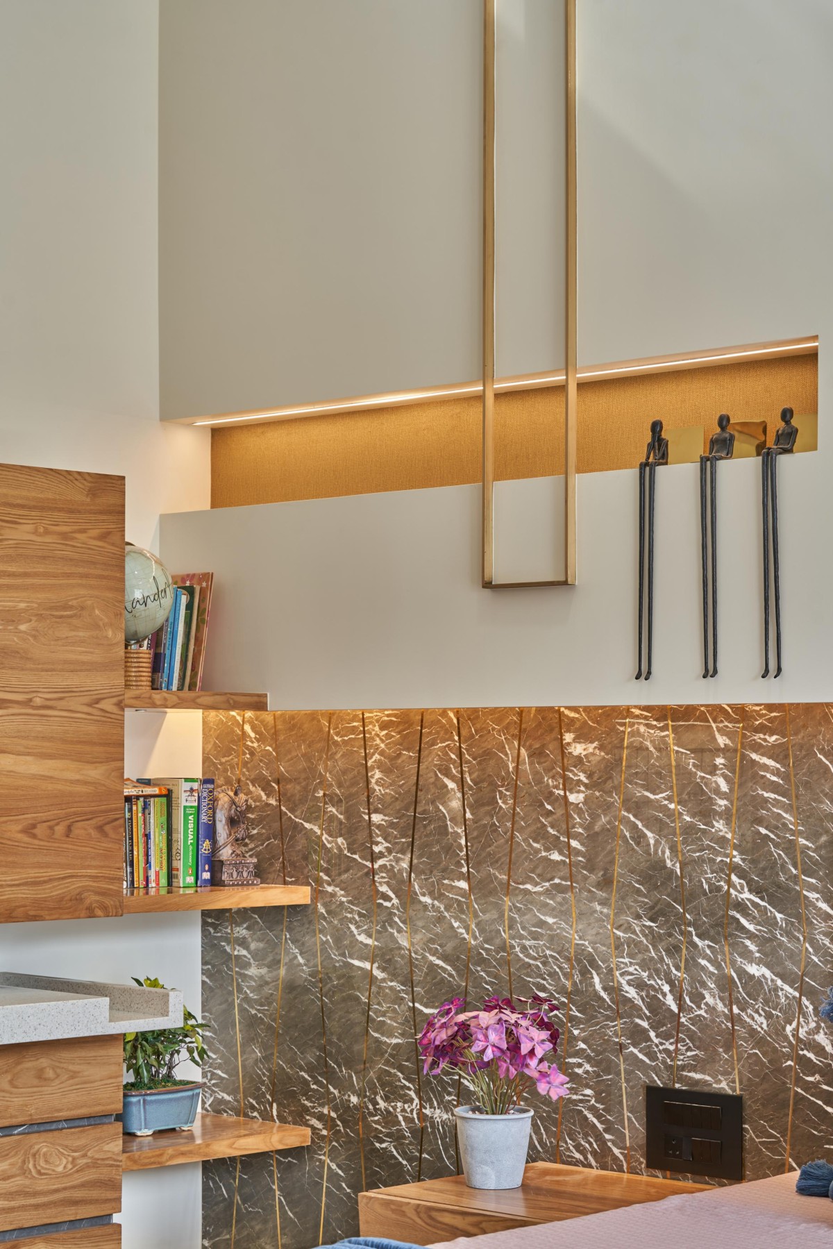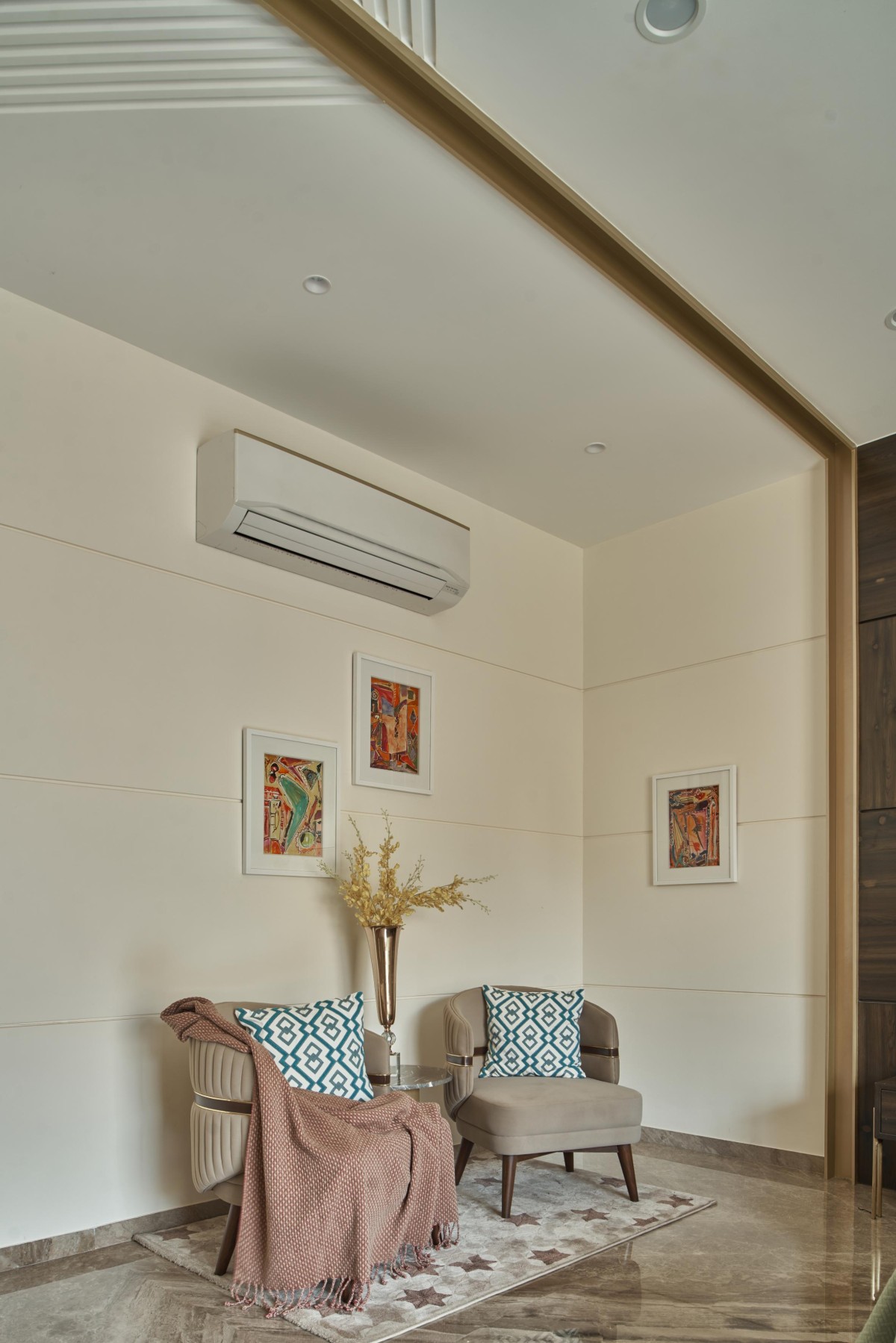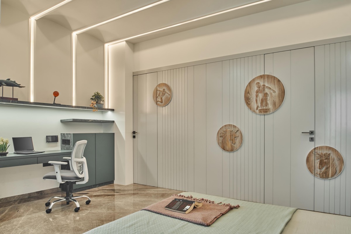 Moving towards the first floor we open up to a study room/office which was locked between the master bedroom and the kids bedroom, kids being at a very younger age were given a single bedroom but we had to accommodate 3 bedrooms for all the 3 kids, so this floor consisted of the master bedroom and a bedroom for the elder most daughter.