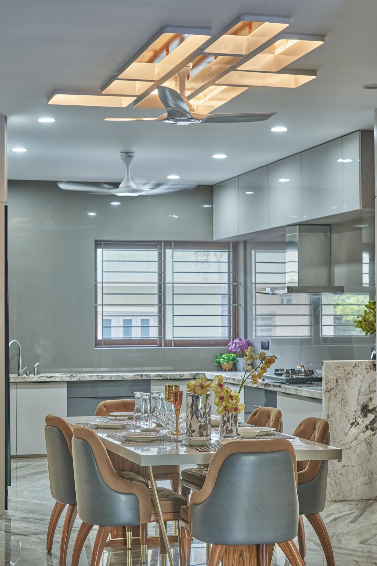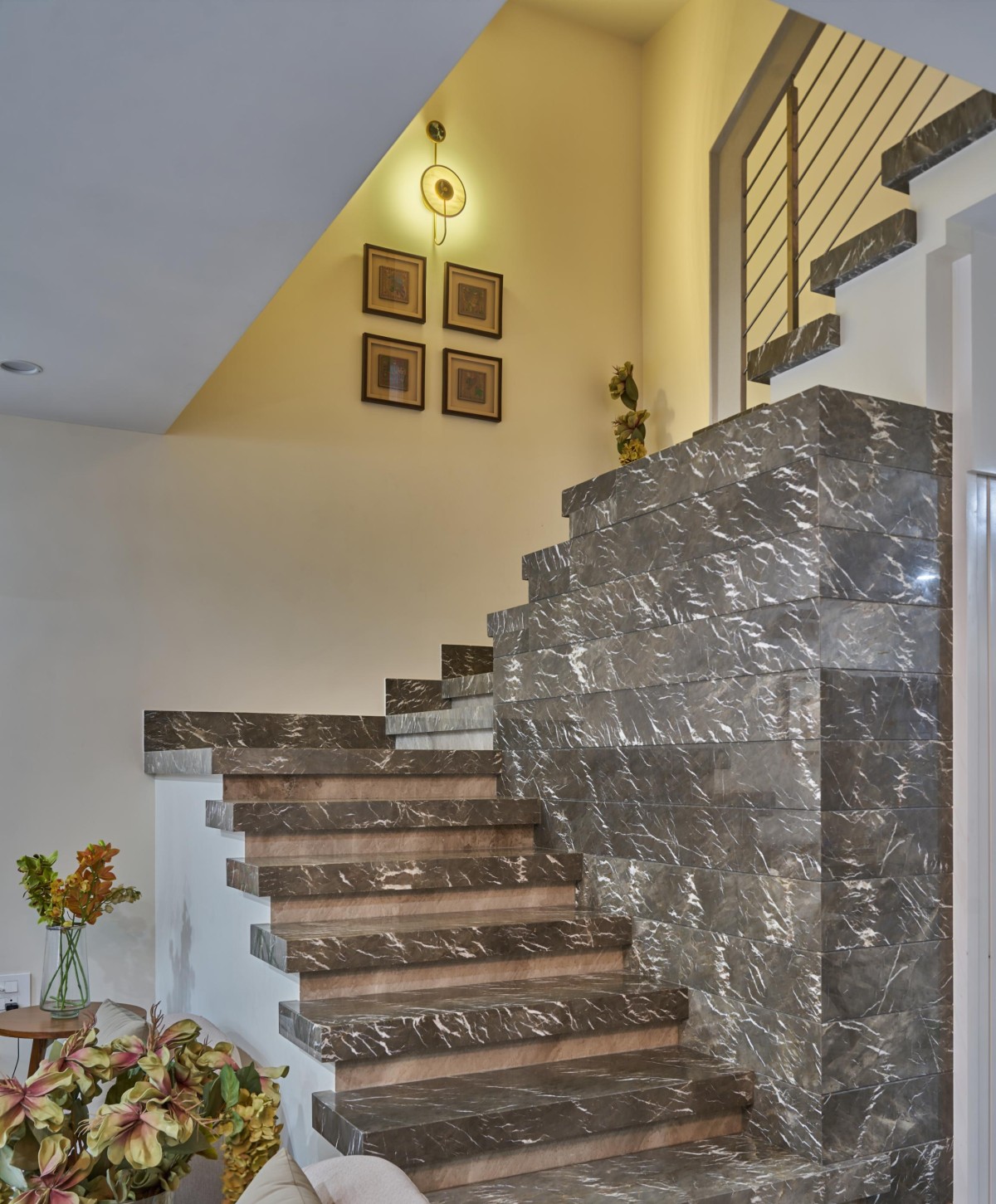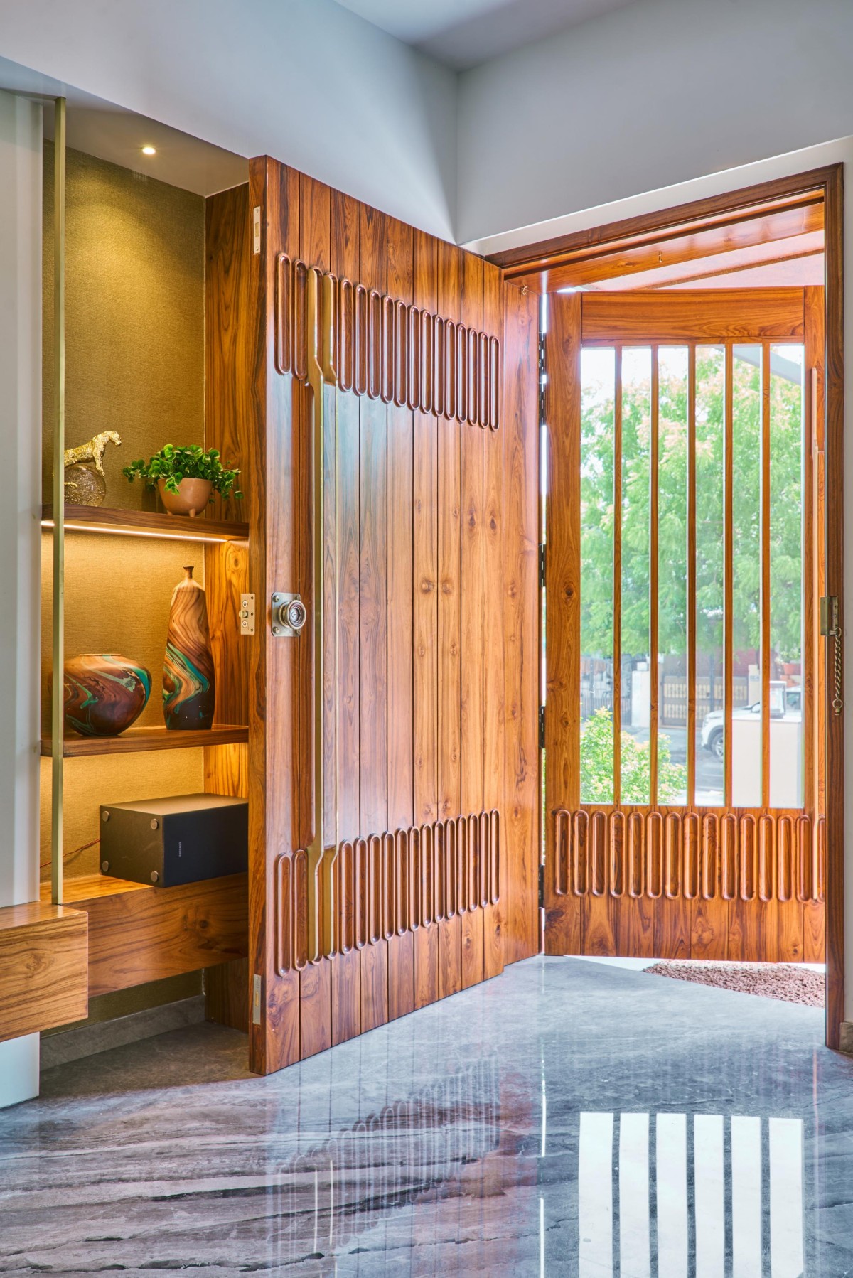 NITYA; Providing a gentle hint of the luxury, the homeowner wants to live in, supposedly made keeping Vastu in the conscious mind, the young family of 3 generations admittedly had a very simple brief to have a highly easy-to-maintain and a very modest house accommodating 4 bedrooms.