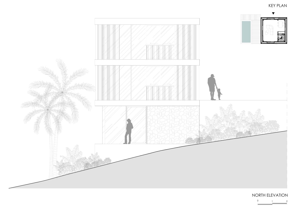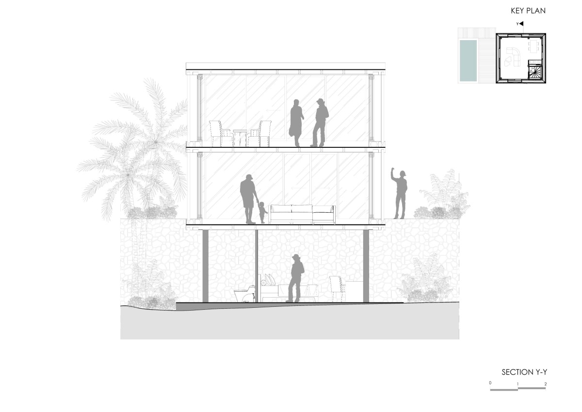 This is a meticulously hand crafted 3 story tower consisting of two bedrooms, private garden, deck and pool area. It is situated on a sloping plot amidst the breathtaking western cliffside of Uluwatu, Bali. While the top bedroom offers a panoramic view of the Indian Ocean, the middle floor serves as the living room, which opens up to a small pool and outside lounge area. The lower bedroom is an intimate stone cladded space, surrounded by tropical green foliage.
