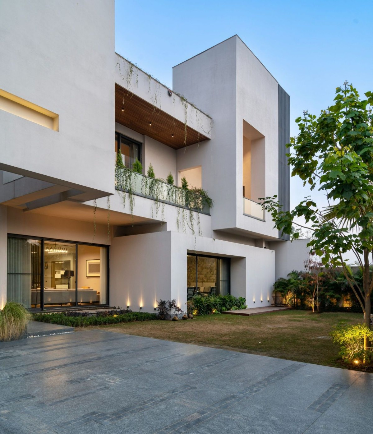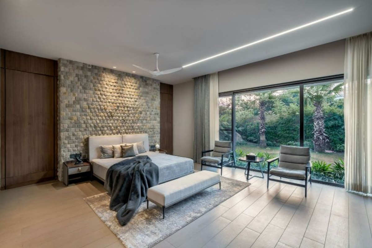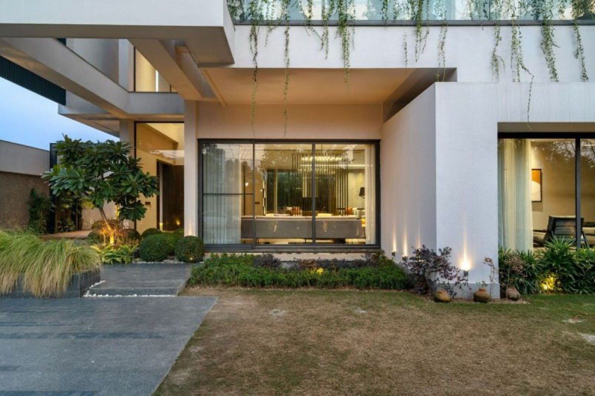 The 8400 sq. ft. house, reminiscent of a homesteader’s settlement is inspired by larger than lives luxurious living with a minimalist touch. The proper proportions, material consistency, and meticulous craftsmanship in Panjab House were all deliberately considered to enhance privacy, serenity and a profound connection to the outdoors.