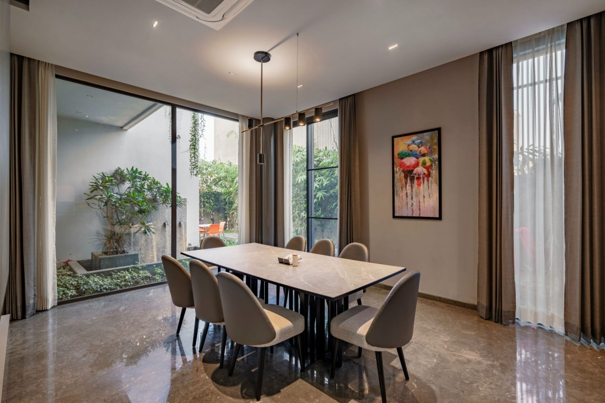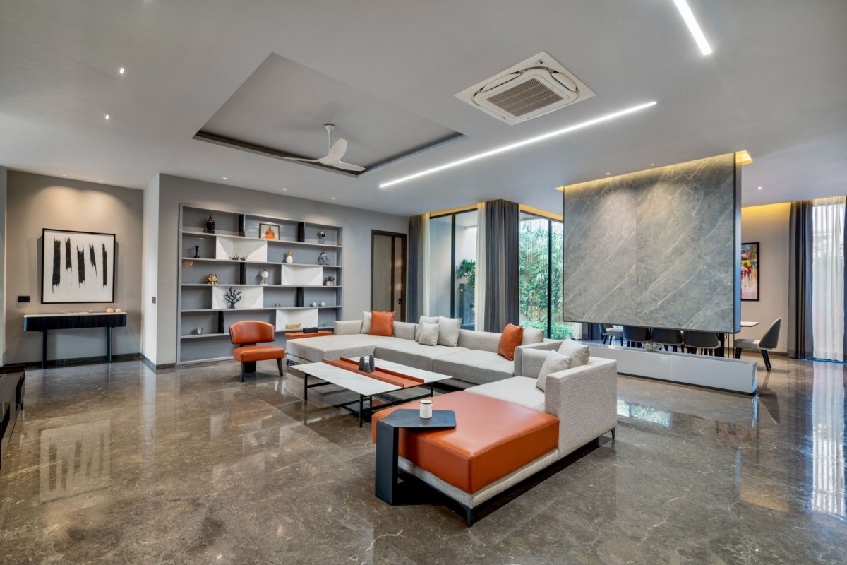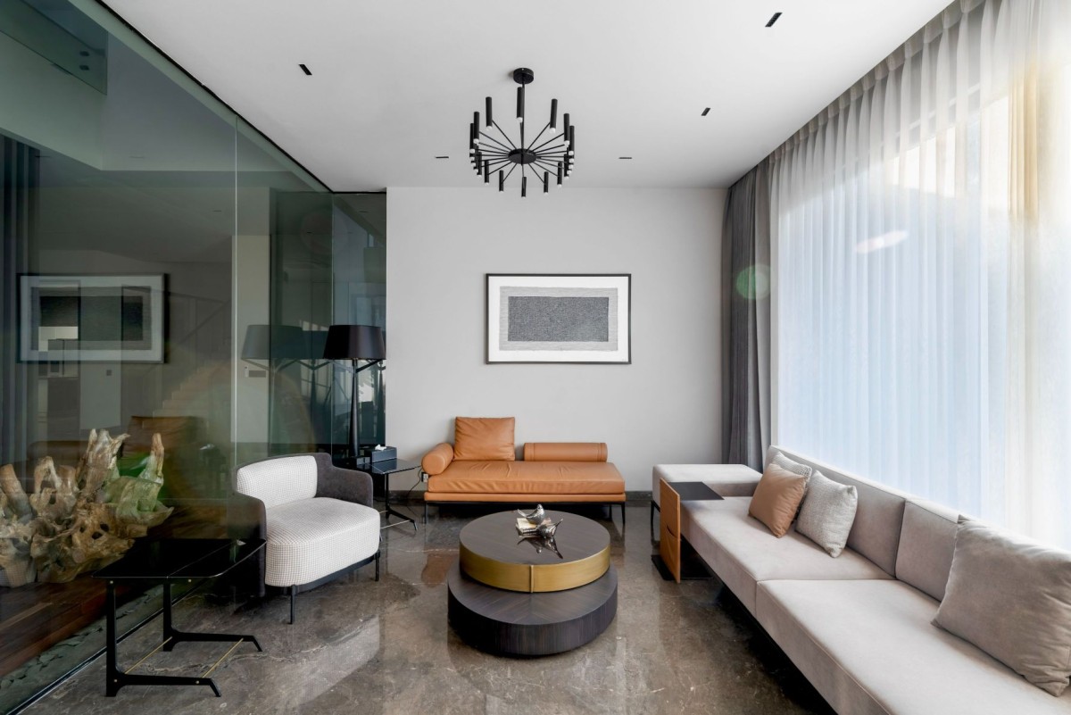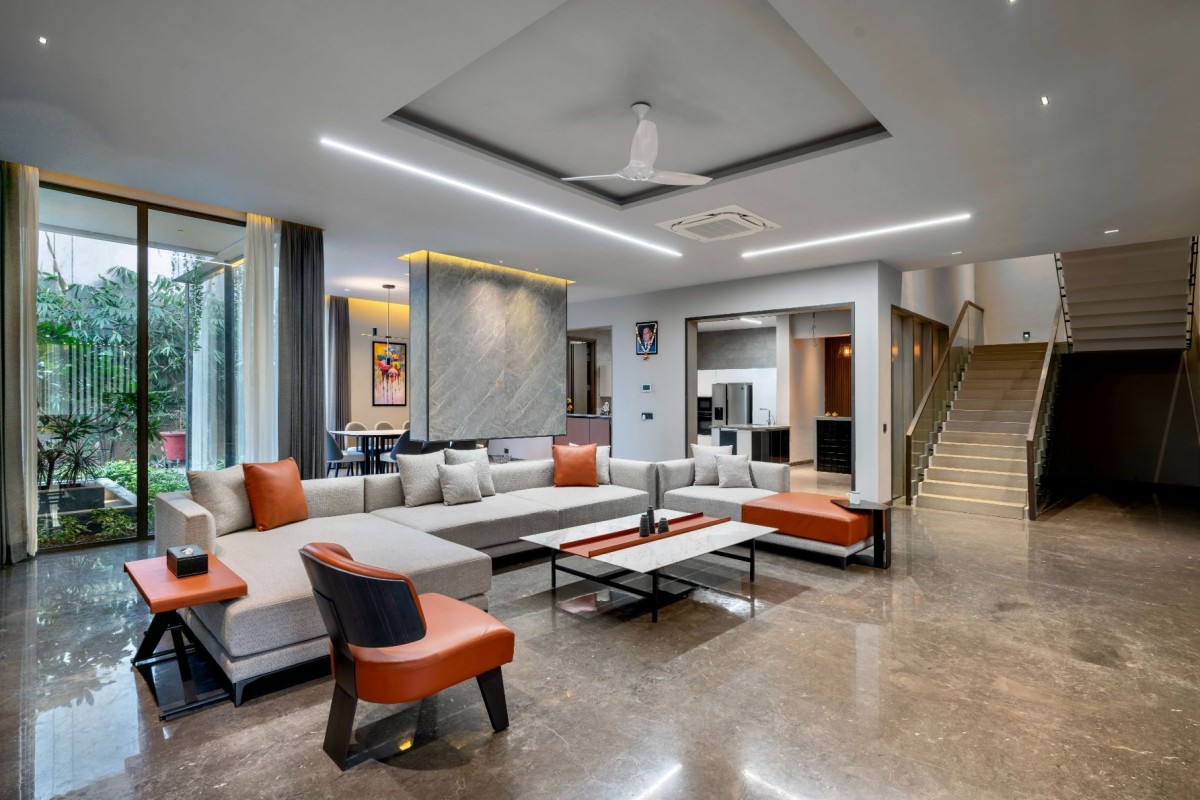 The entire house has been created with contrast and simplicity with the Minimalistic Desing in mind. The exterior and interior walls are cladded with Tile, Fabric and Veneer with subtle steel detailing. All are specially thought out with a contemporary touch with the Italian Marble.