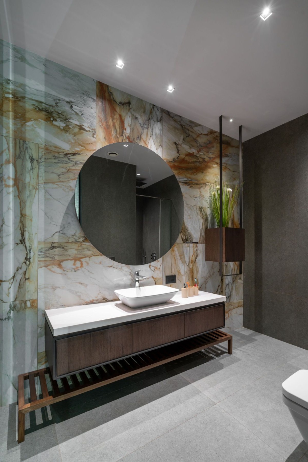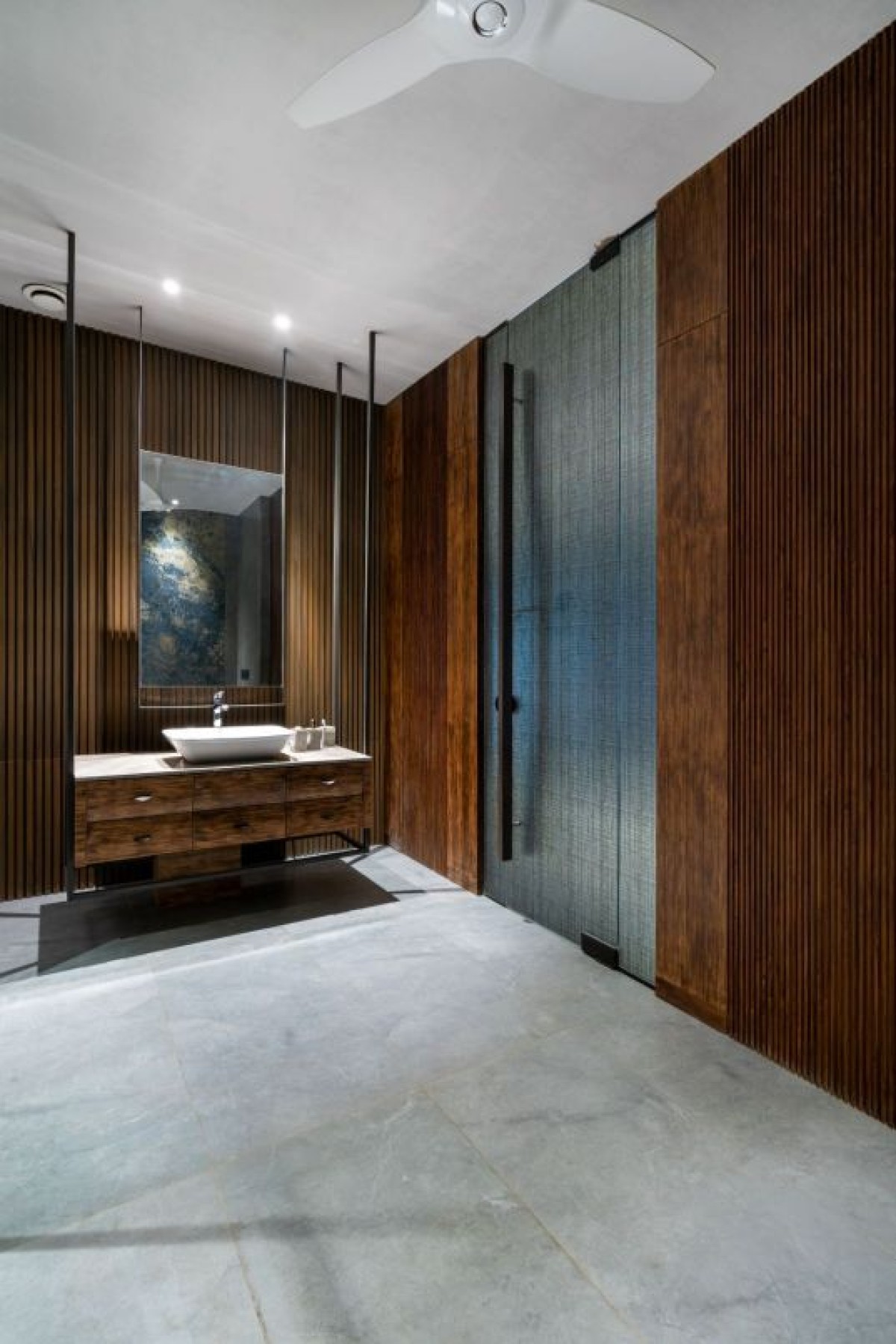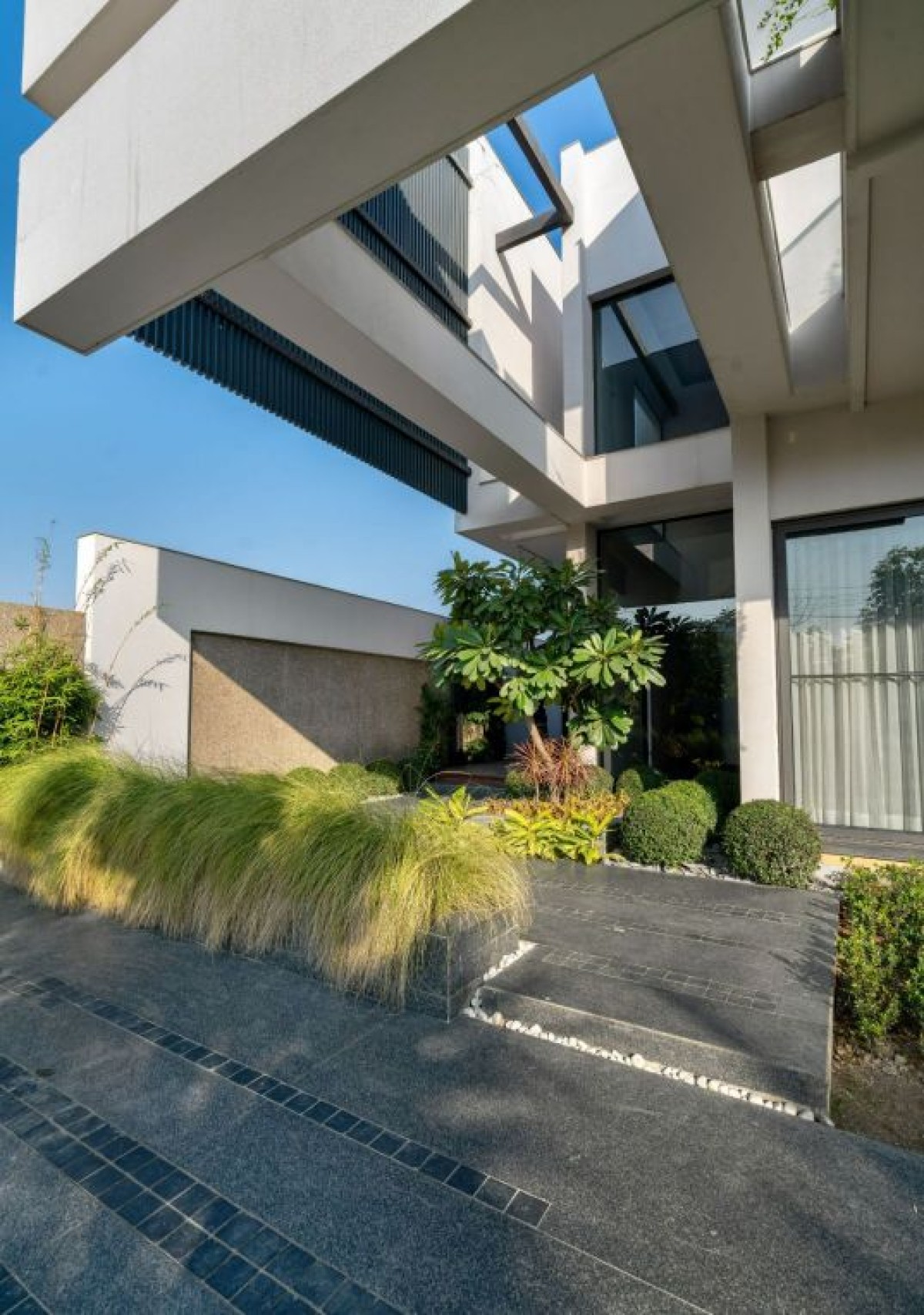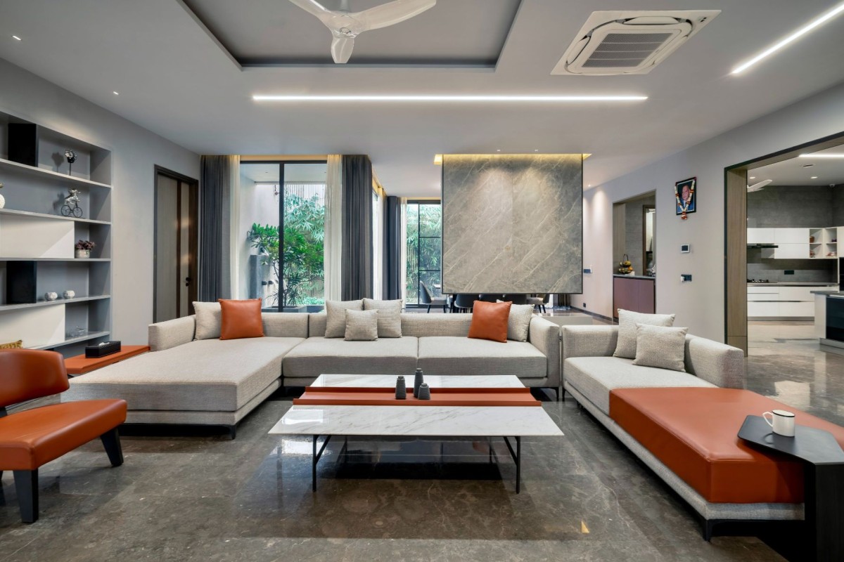 The entire house has been created with contrast and simplicity with the Minimalistic Desing in mind. The exterior and interior walls are cladded with Tile, Fabric and Veneer with subtle steel detailing. All are specially thought out with a contemporary touch with the Italian Marble.