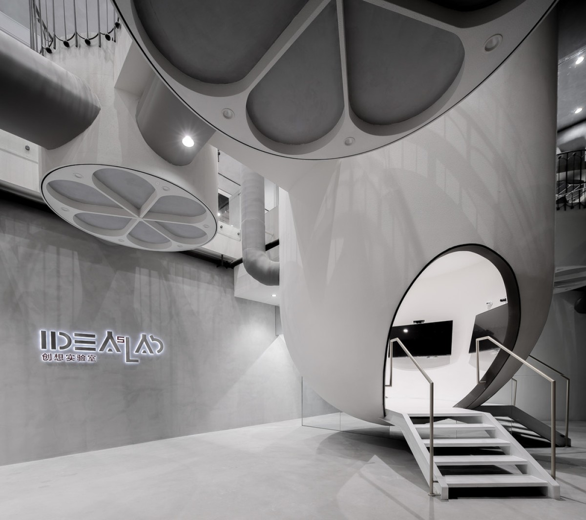 With the advent and popularity of computers in the 21st century, the invisible Information Age deduced and changed the humanity and commercial mode of the physical world. X+Living designed Powerlong Ideas Lab to be a place where more information for learning is created and spread, with the hope of completing joint research and information technology development through interactions with consumers and information technology creators. The design goal is to explore the hidden business value of the aforementioned era through a multifunctional space.