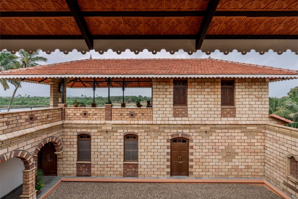 Entry into the homestay begins at the ground floor, leading directly into the main courtyard, which acts as the central dispersal point for the rooms. The courtyard extends seamlessly into a bridge that leads to semi-covered and covered living areas that subtly frame views of the river without immediate exposure. The edge is designed in a way that has unobstructed views from the corner. While from the outside, there is no immediate indication of the river, maintaining an element of surprise, while when one enters the rooms, the view floods the vision dramatically.