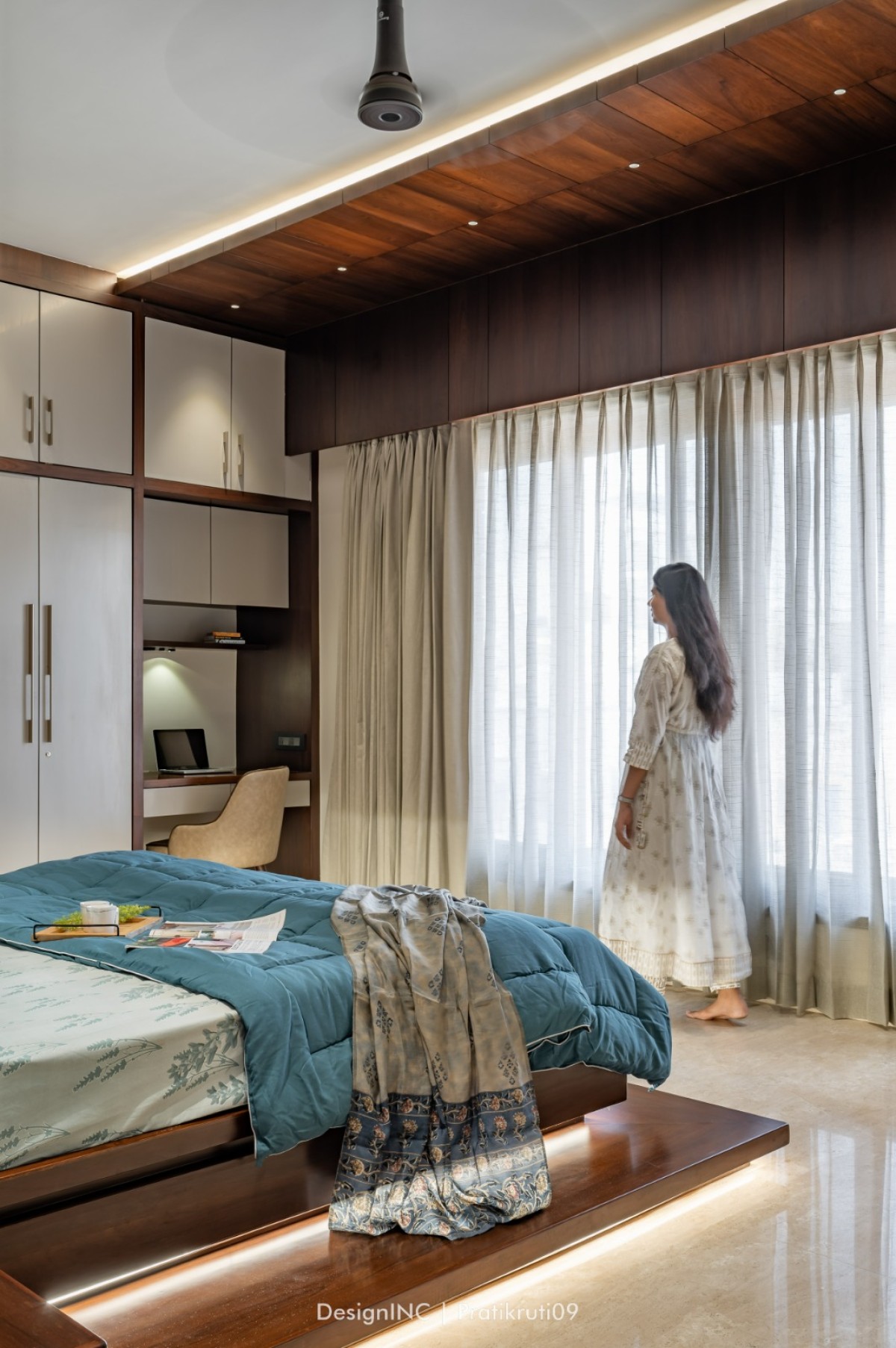 Combination of different types of lighting fixtures to enhance the ambiance. Use of recessed lighting to highlight specific areas and pendant lights and chandeliers to create a focal point has added to richness in space. Lighting is automated facilitated with smart technology.