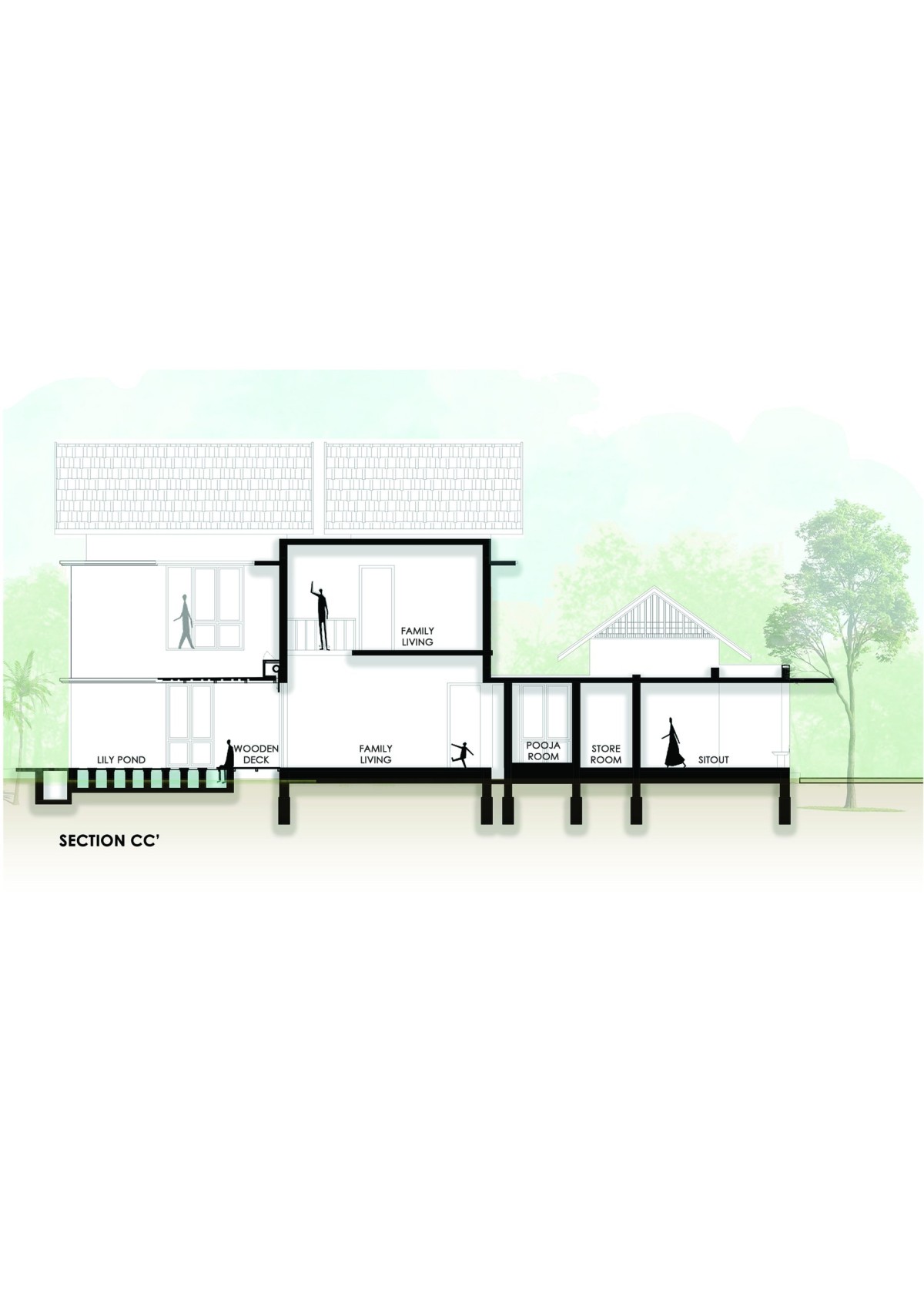 Section CC of Shekharam by TWO i Architects