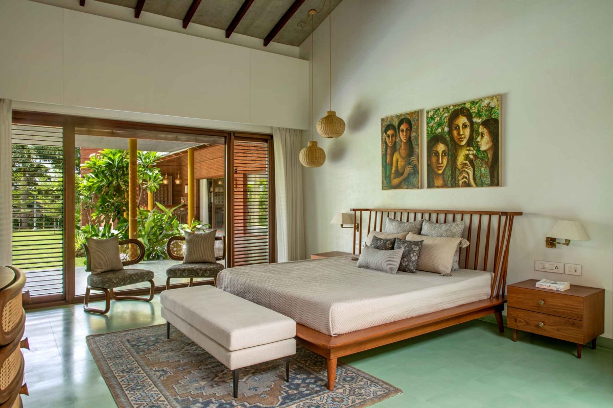 Bedroom of Sitish Parikh Farmhouse by Dipen Gada and Associates