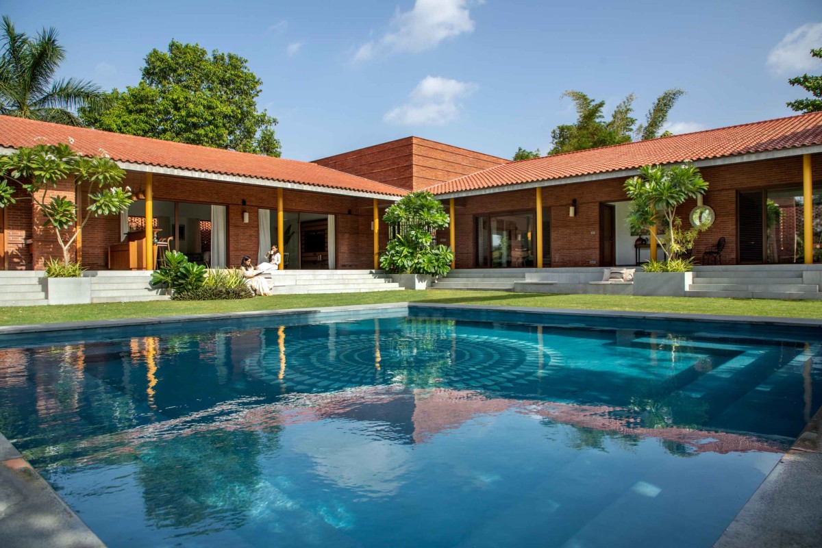Indoor Court of Sitish Parikh Farmhouse by Dipen Gada and Associates