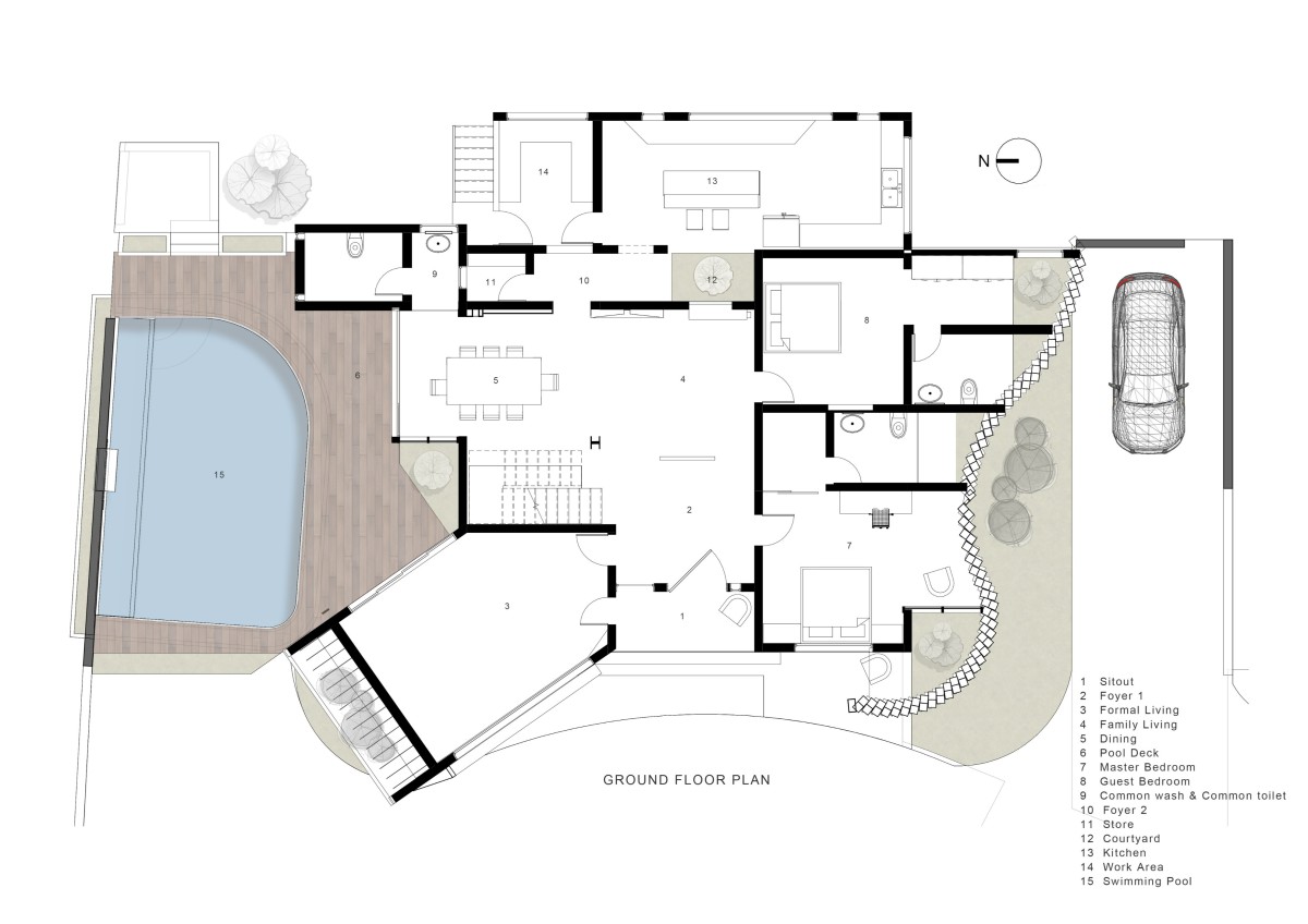 Ground Floor Plan of Skew House by ZOLID Architects