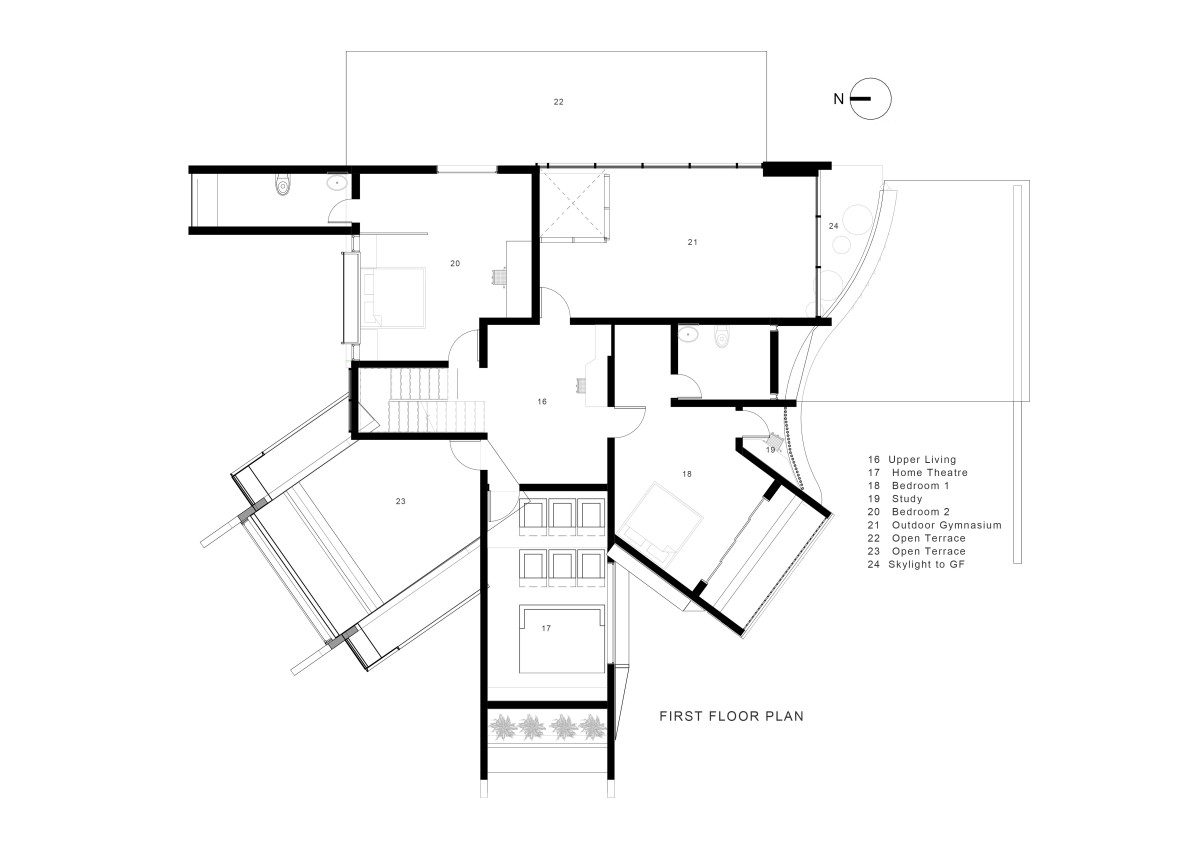 First Floor Plan of Skew House by ZOLID Architects