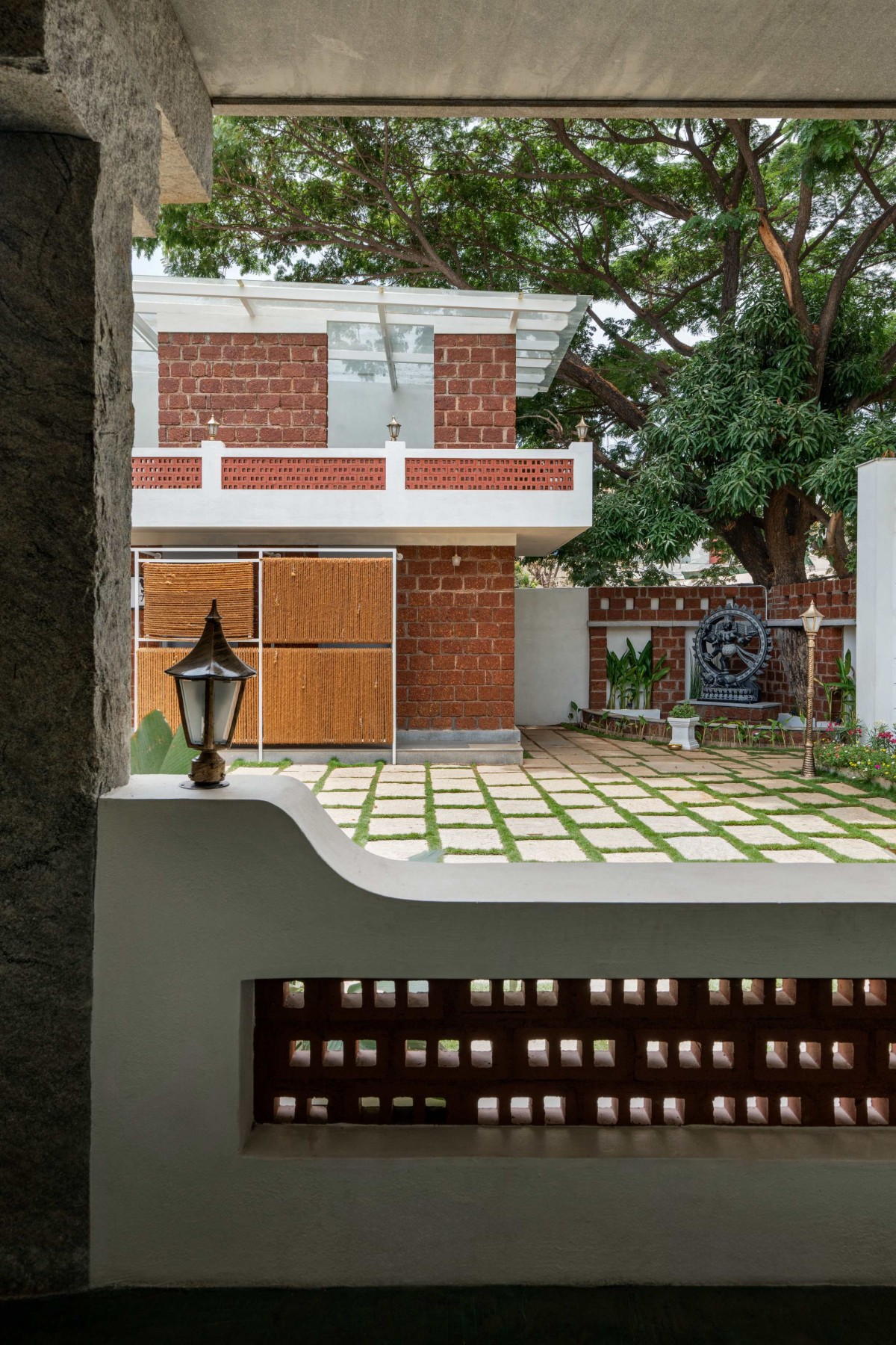 At the heart of the project stands a 6.5-foot stone sculpture of Lord Nataraja, commissioned from a prominent sculptor. Positioned as the culmination of the spatial journey, the sculpture embodies stillness within movement—a focal point that evokes contemplation and quiet reverence. For the architect, a classical dancer and devotee, this element is both symbolic and personal, reinforcing the belief that the site itself holds an enduring spiritual resonance.